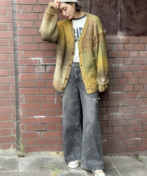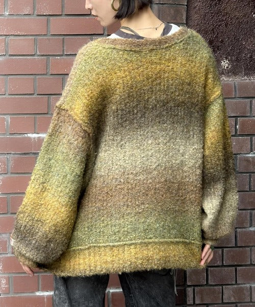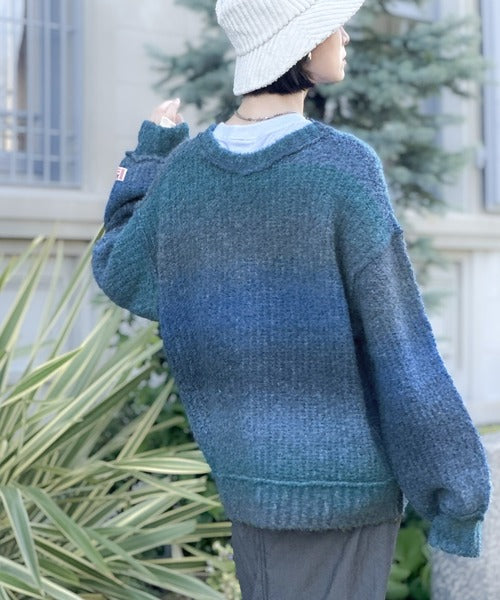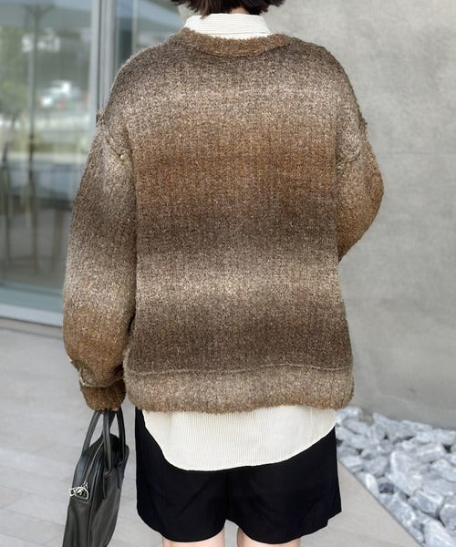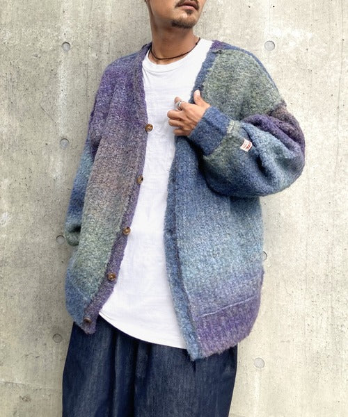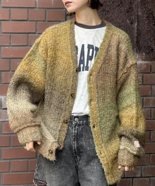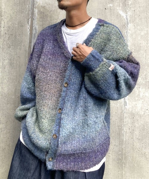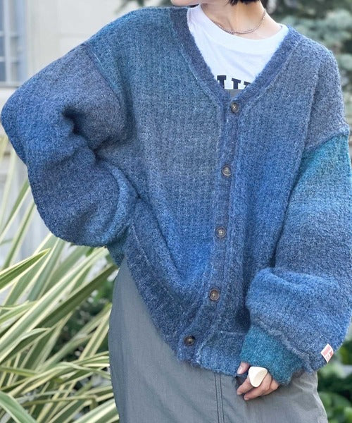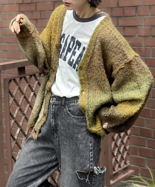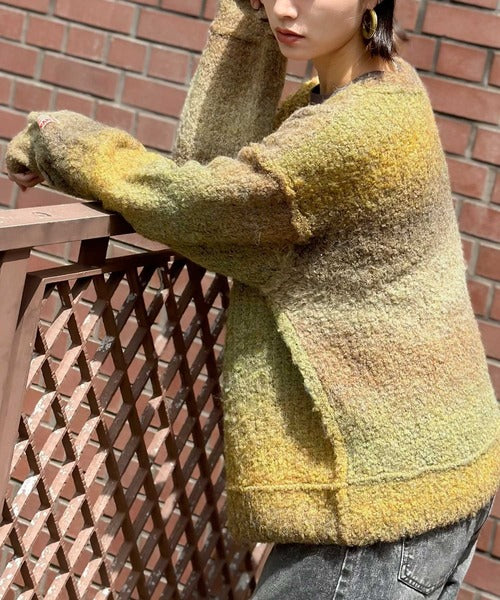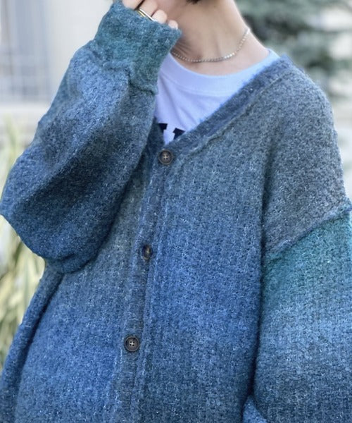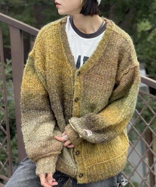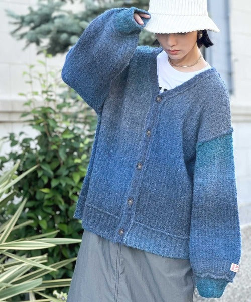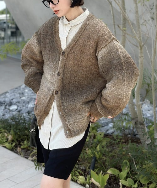 印象的なカラーグラデ―ションで、トレンド感あるお洒落な着こなしが叶うニットカーディガン。