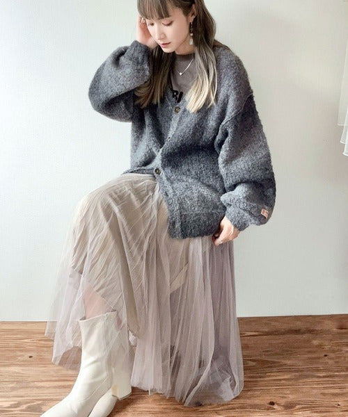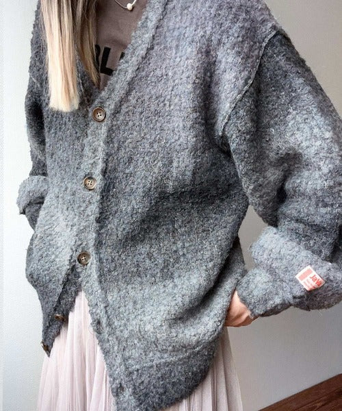 ゆったりしたサイジングのVネックカーディガンは、バランスが良く体型カバーも期待できる万能ニット。