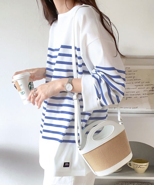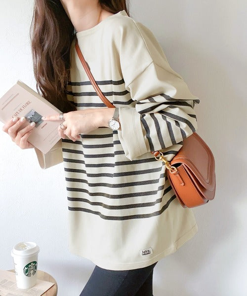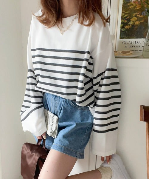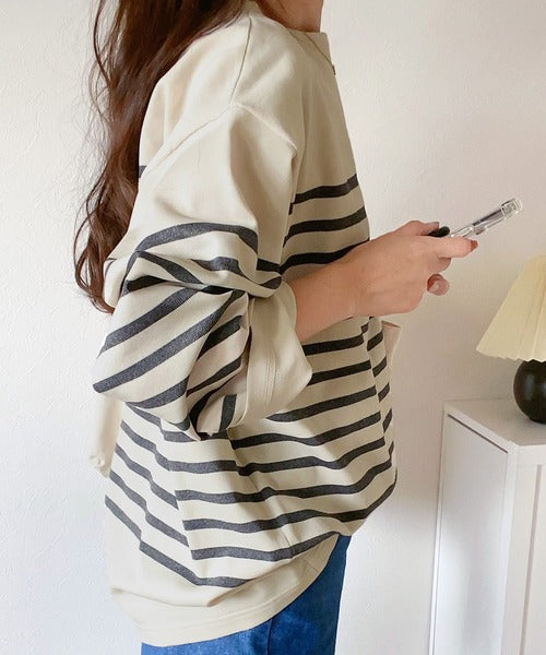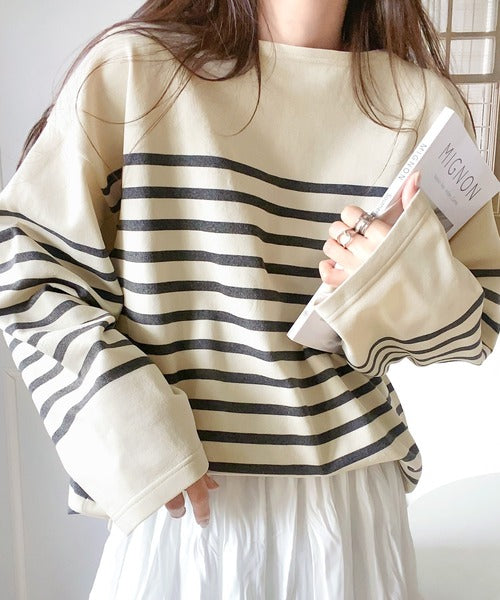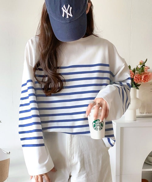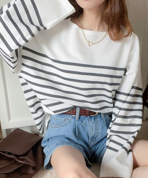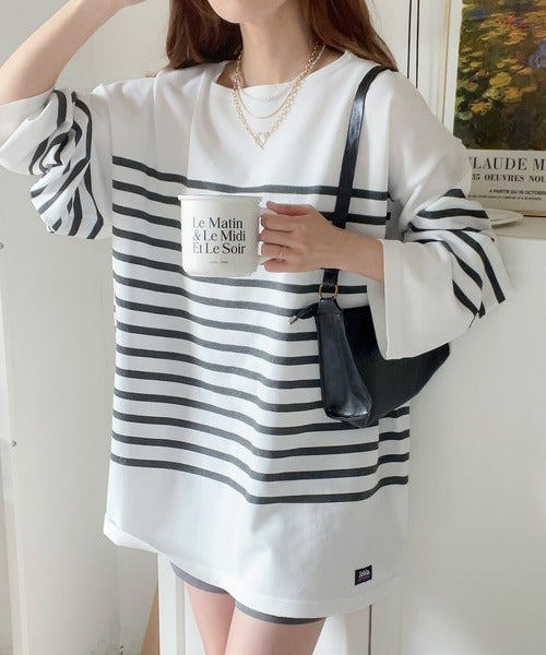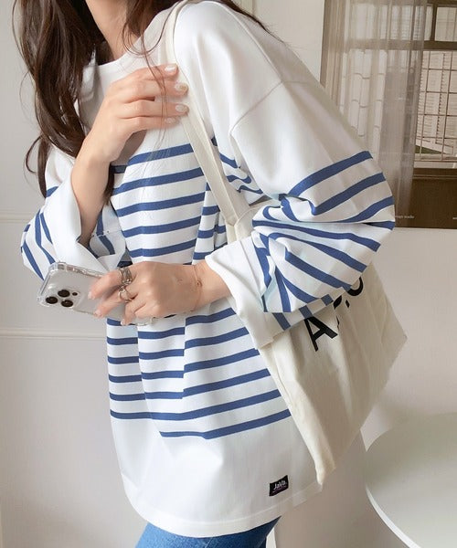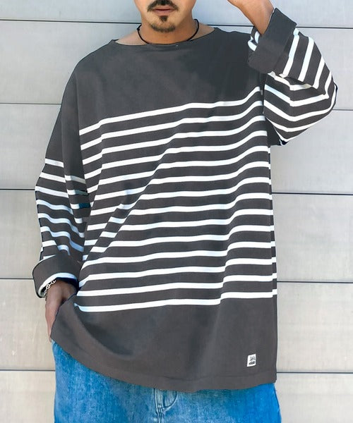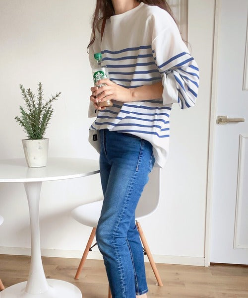 かすれボーダーで、こなれ感のあるバスク風ボーダーロンT。