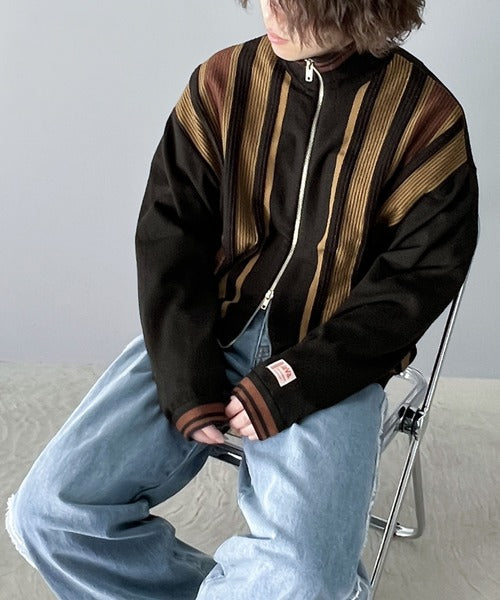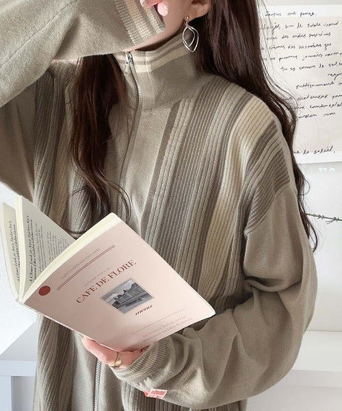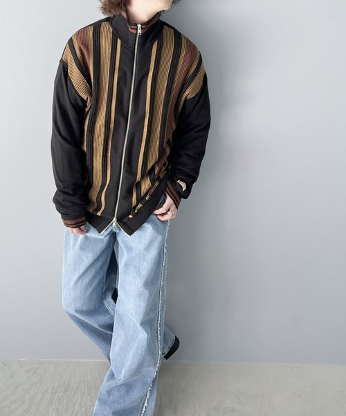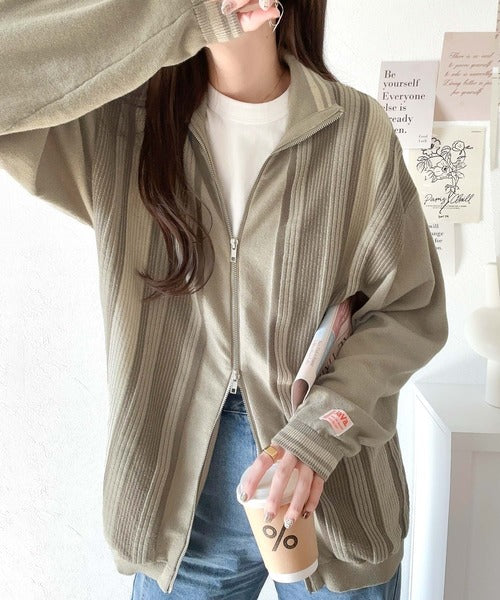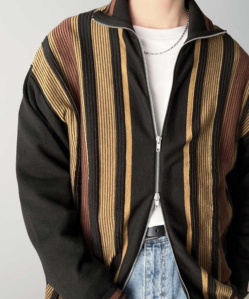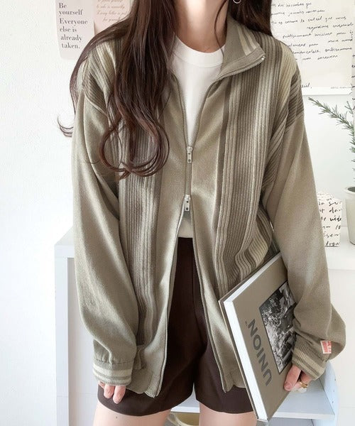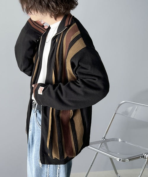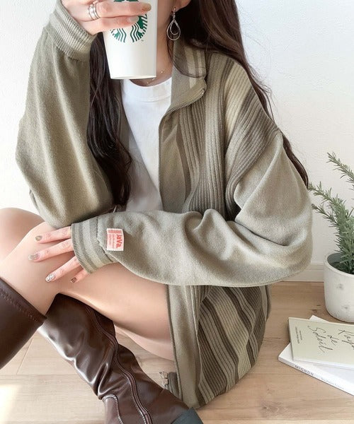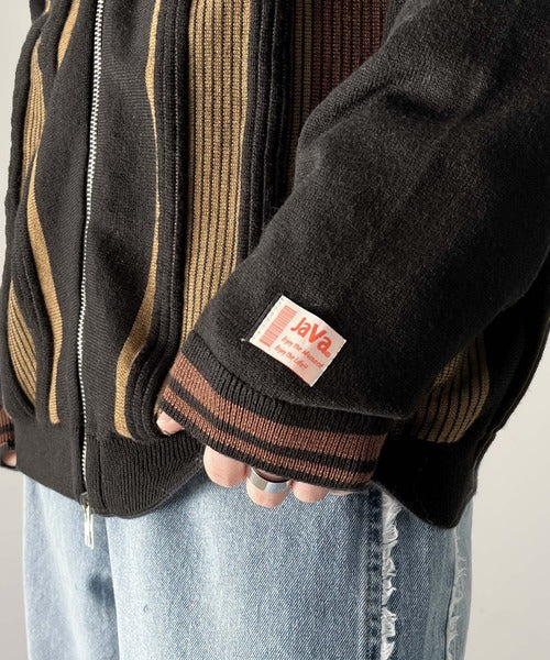 《Javaジャバコラボ》1枚投入でスタイルが決まる。マルチストライプリブZIPカーディガン jv1219017