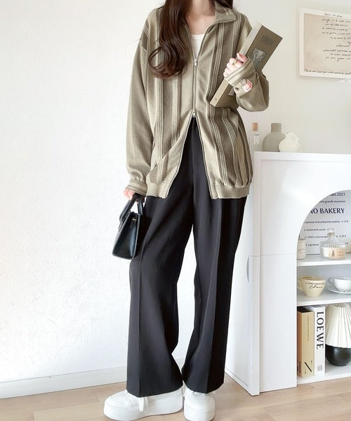 羽織りとしてはもちろん、ジップを閉じてトップスとして一枚での着こなしもおすすめです。