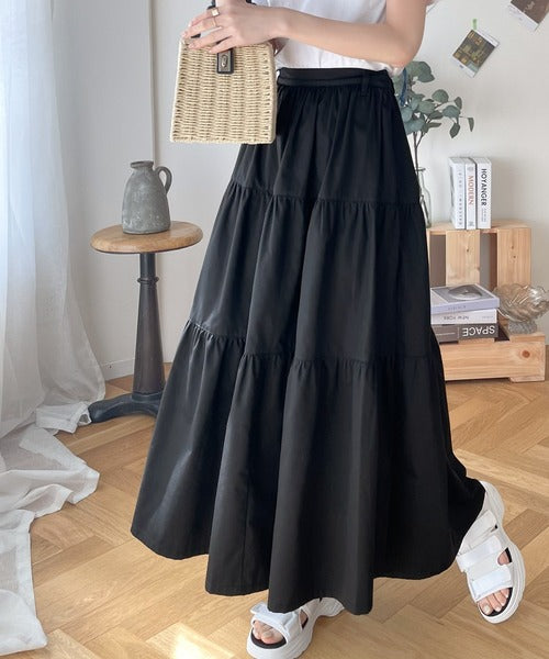 アクティブな雰囲気の中に、ボリュームたっぷりのティアードシルエットが