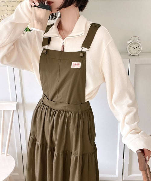 サロペットワンピースとしても、スカート単体としても使える優れもの。