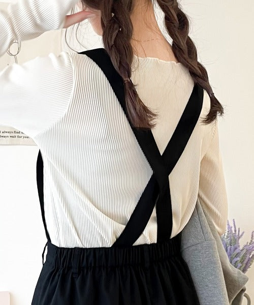 カジュアルなカットソーやガーリーなトップスとのスタイリングはサロペットとして、