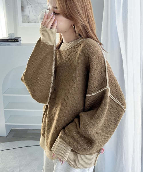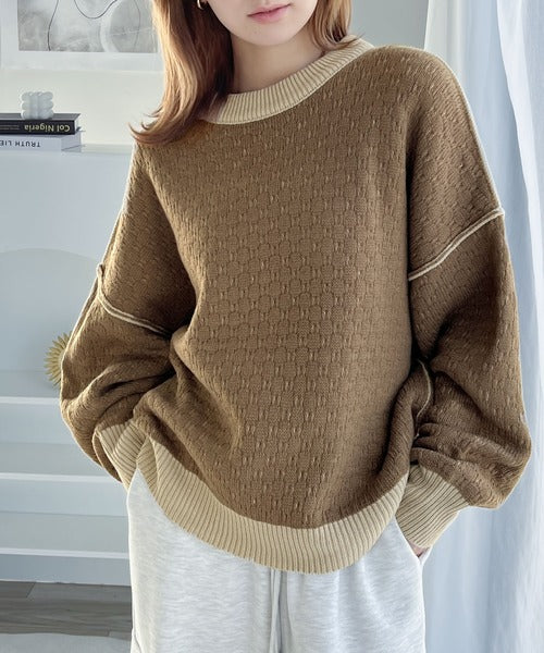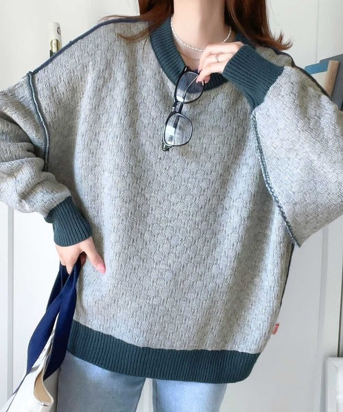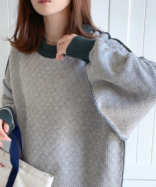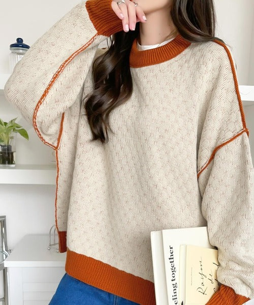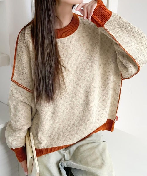 配色デザインがアクセントになったトレンド感抜群のニット。