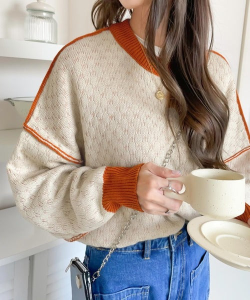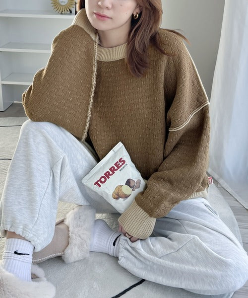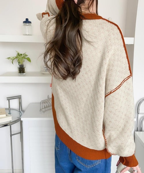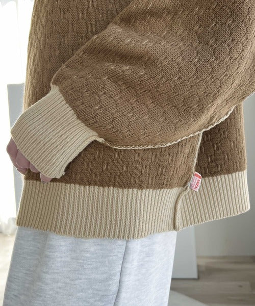 《Javaジャバコラボ》配色カラーが目を惹く主役級item。2wayリバーシブル配色ニット jv1220009