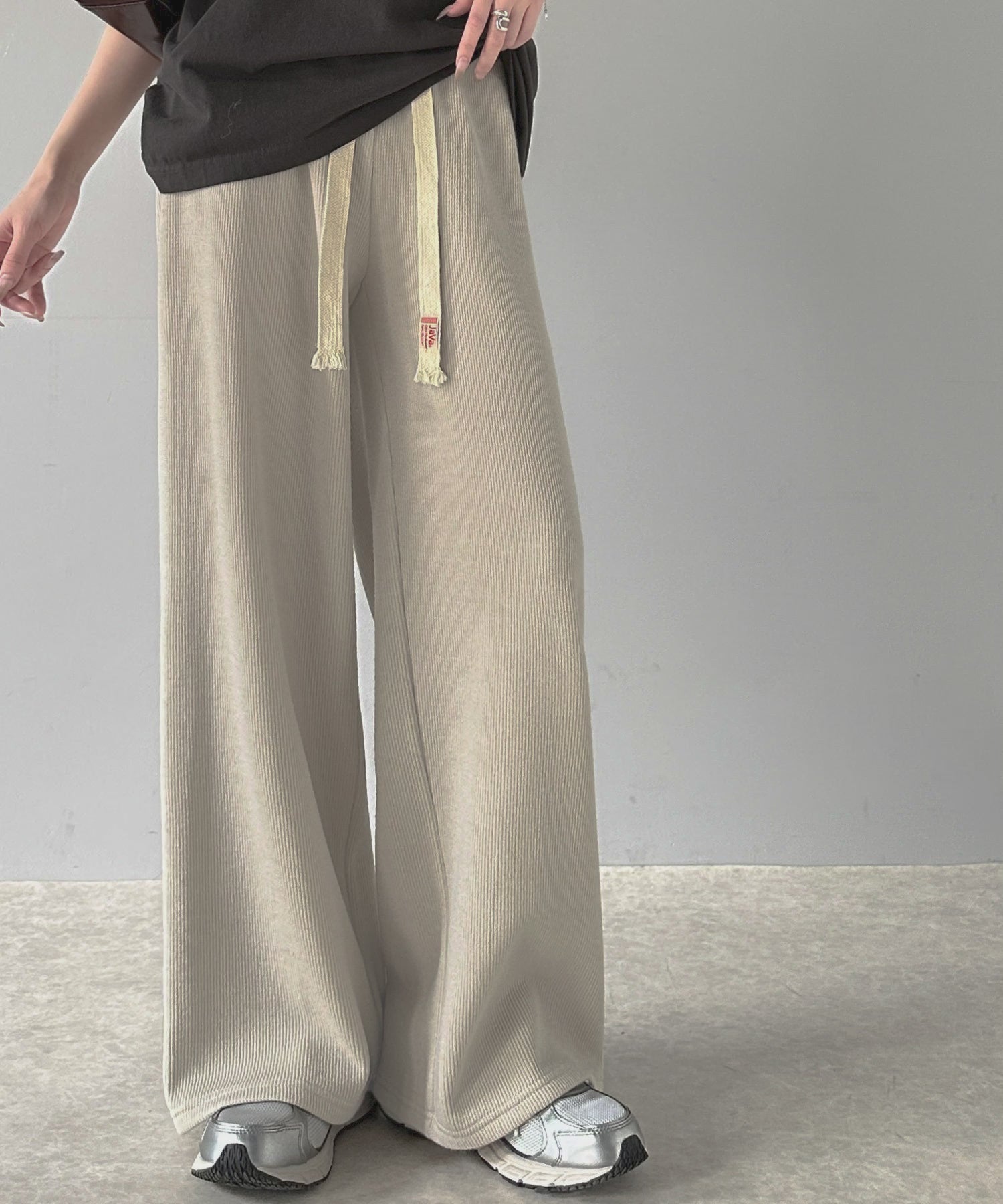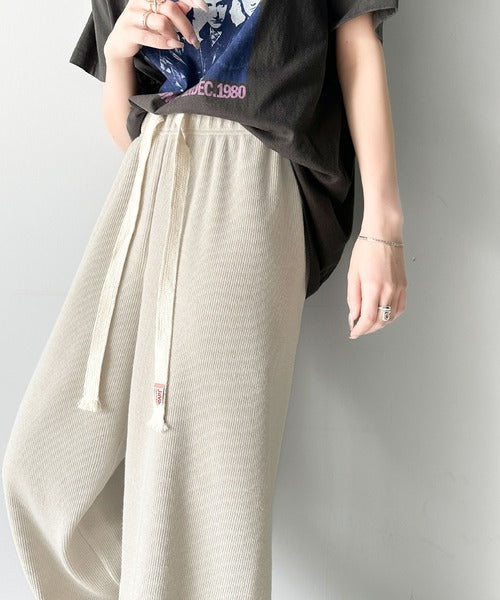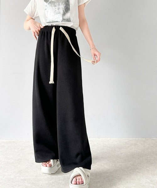 《JaVa ジャバコラボ》スタイリッシュな大人のリラクシーボトムス。太紐ワイドパンツ jv1220013