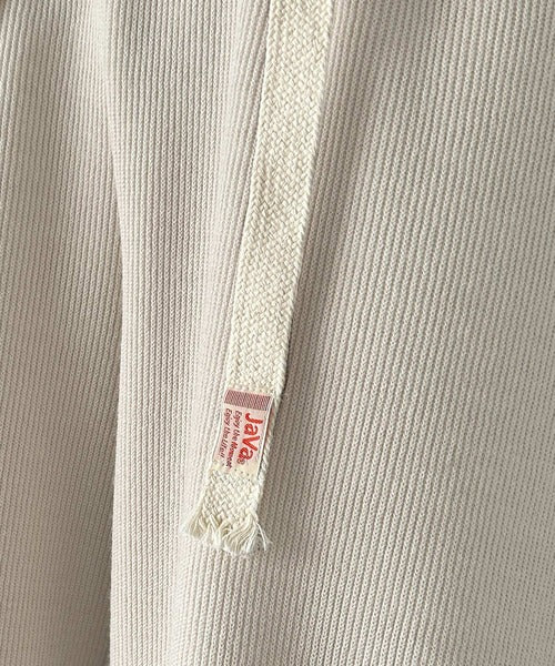 ウエストは楽ちんな総ゴム仕様でJaVaタグ付きのドロストコードがアクセント!
