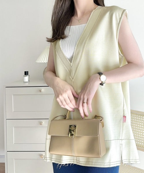 《JaVa ジャバコラボ》1枚でお洒落上級見え。ステッチ入りフリンジVネックベスト jv1240004
