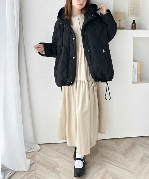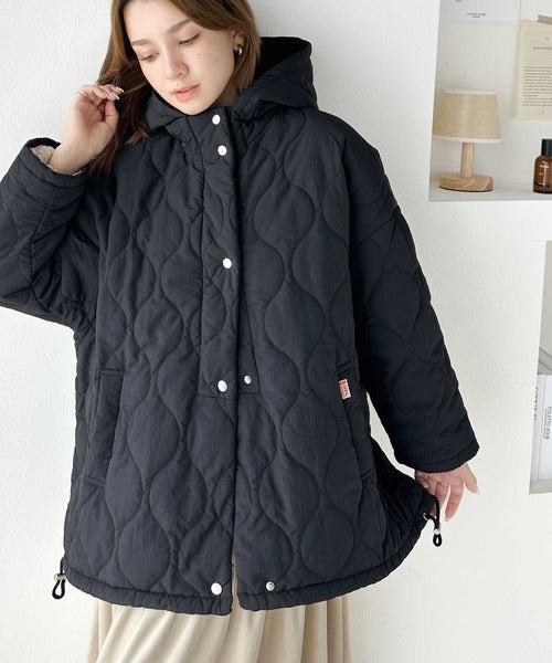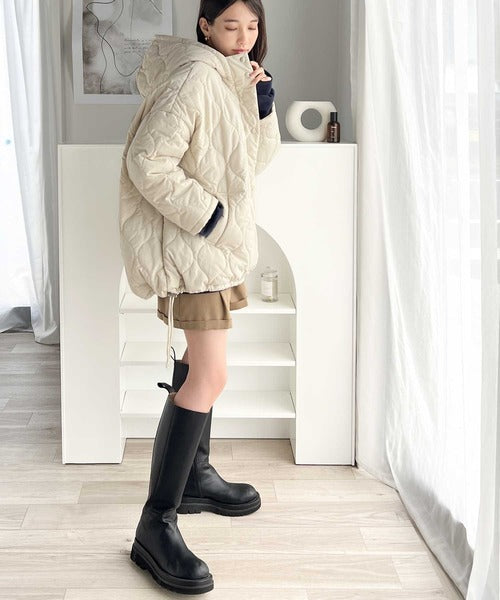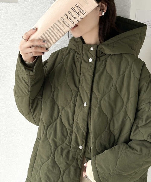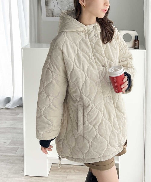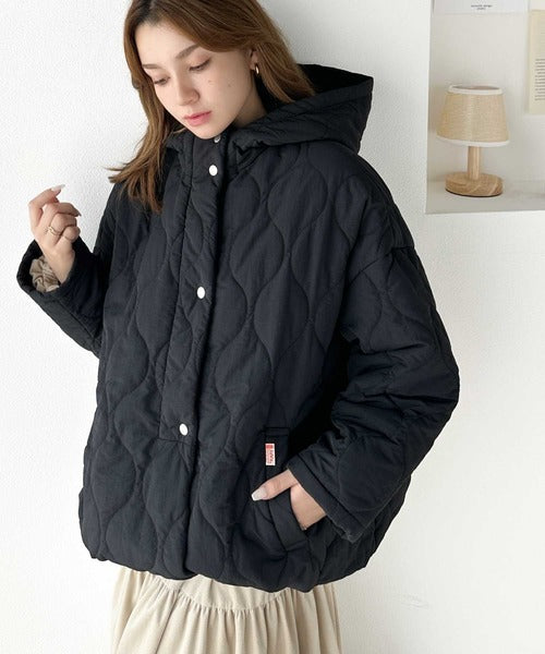 今季も人気の波型のキルティングを採用したフード付きブルゾン。