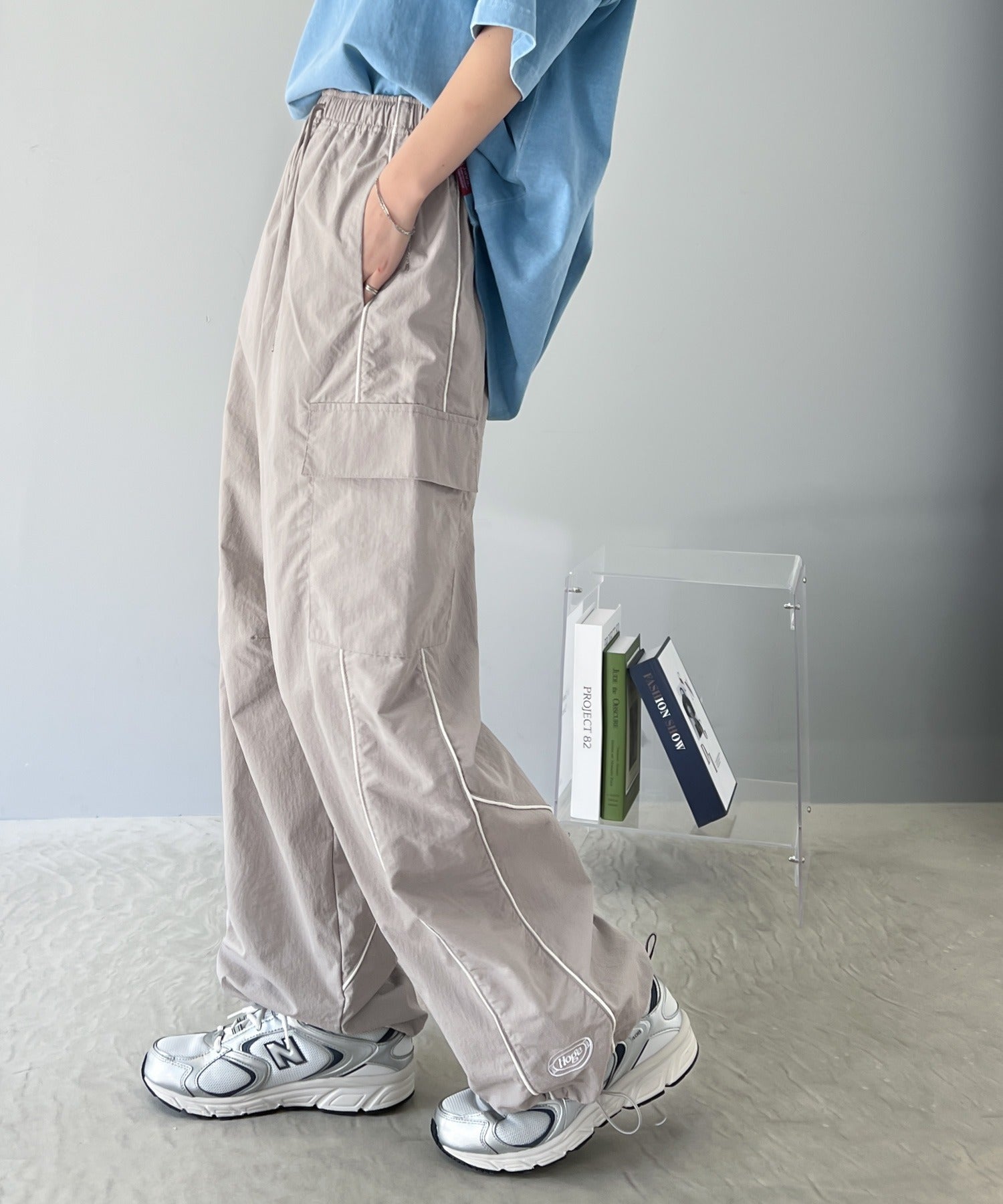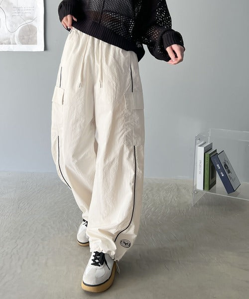 配色パイピングが遊び心のある、スポーティなカーゴパンツ。