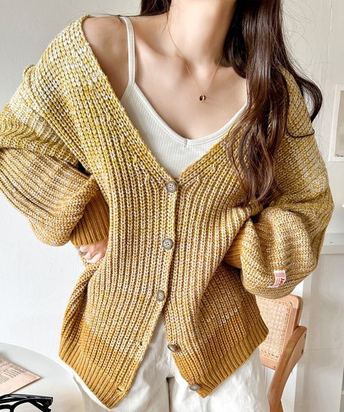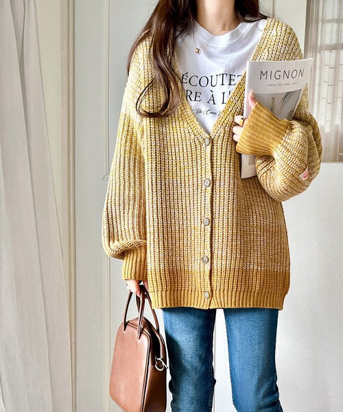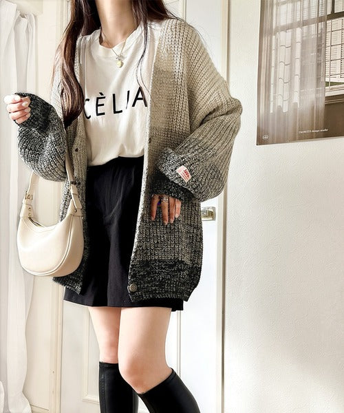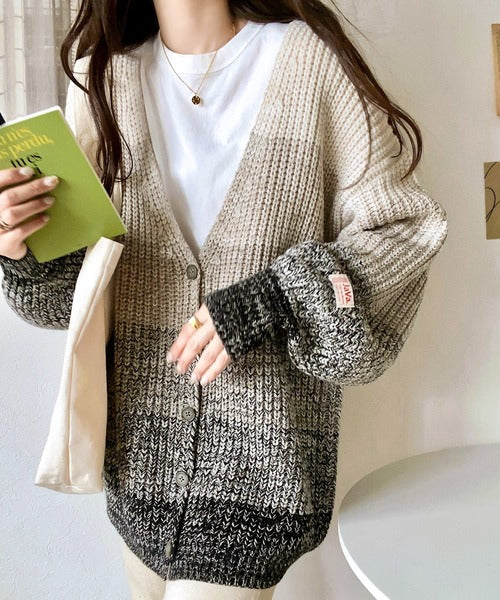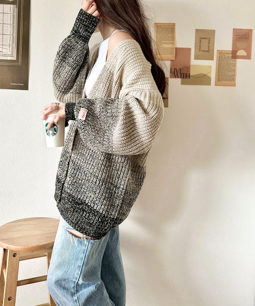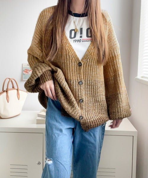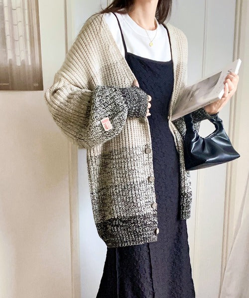 ゆったりシルエットの肉厚でグラデな素材感が、お洒落映えなカーディガン。