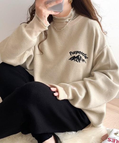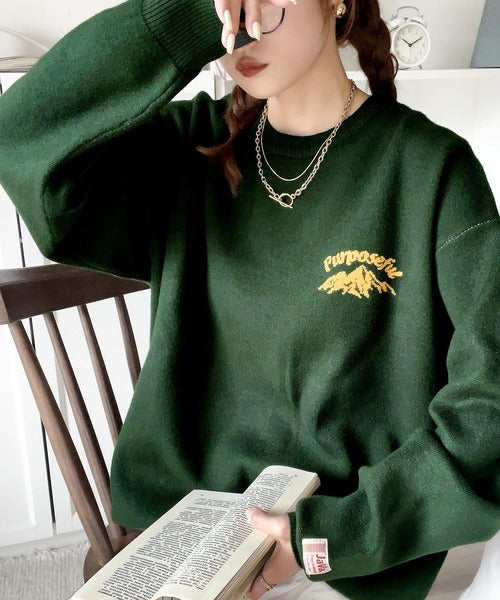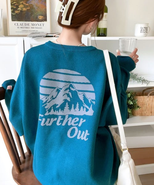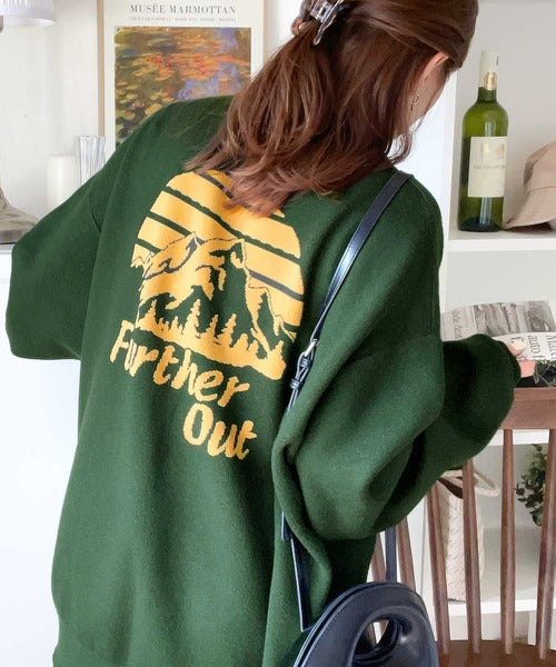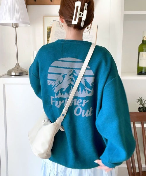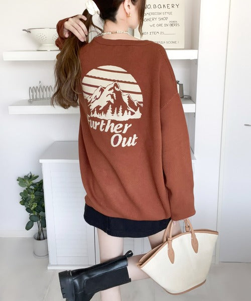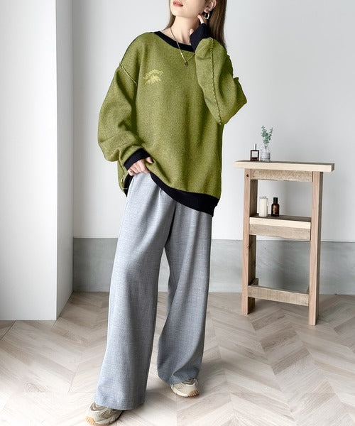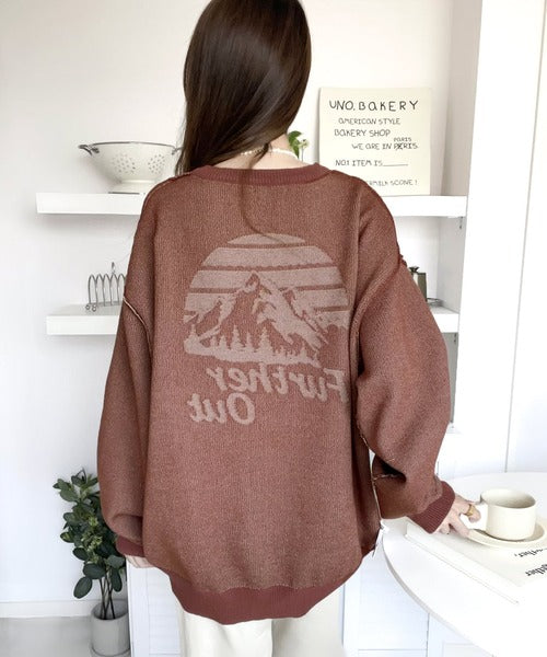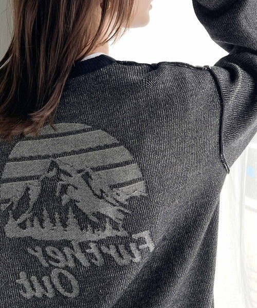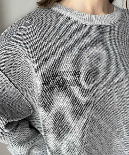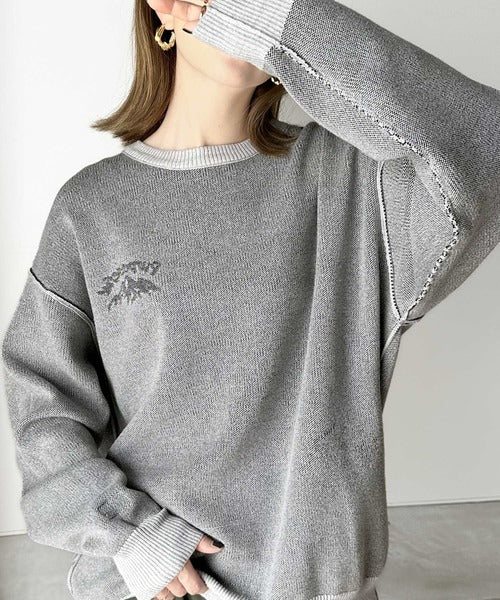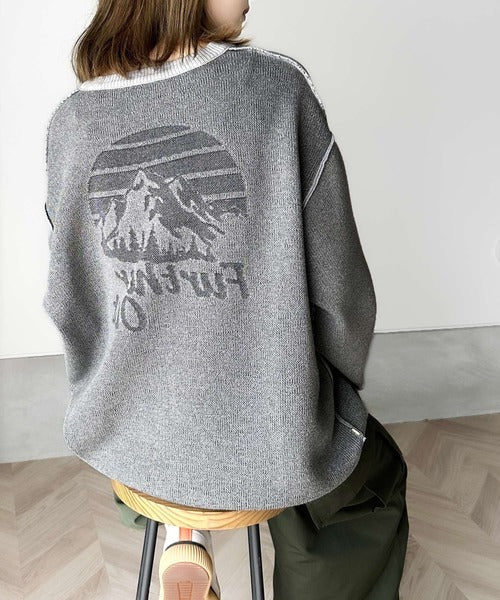 リバーシブルで流行りのグラフィックにスウェット見えのオシャレニット。