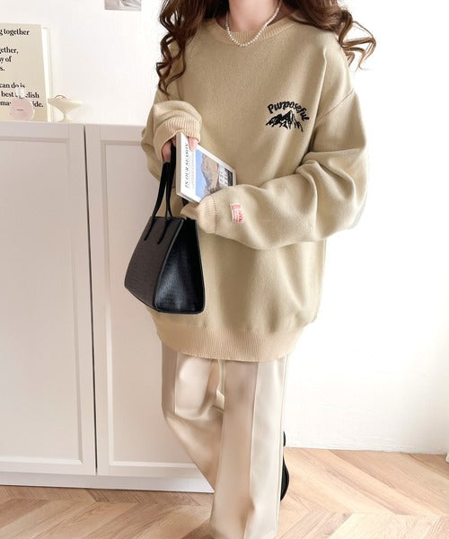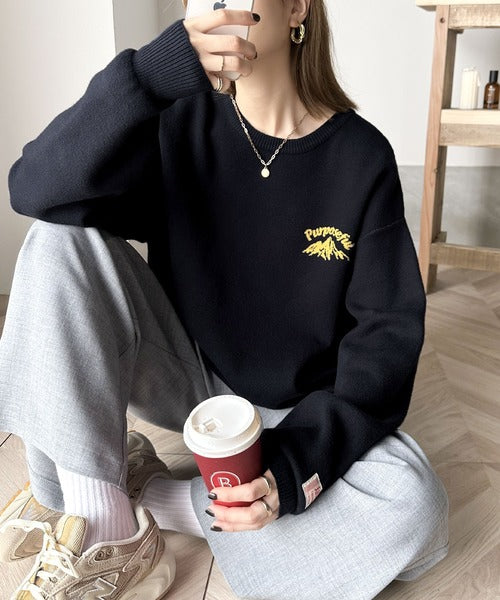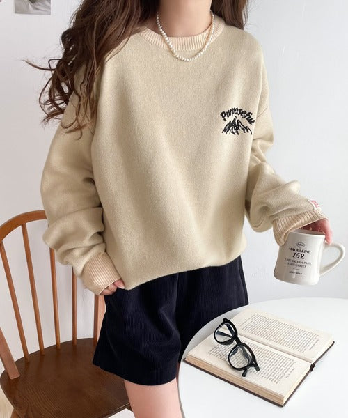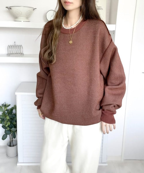 着るほどに馴染むスウェット風の肉厚ニットです。