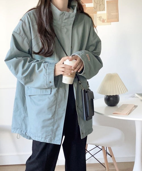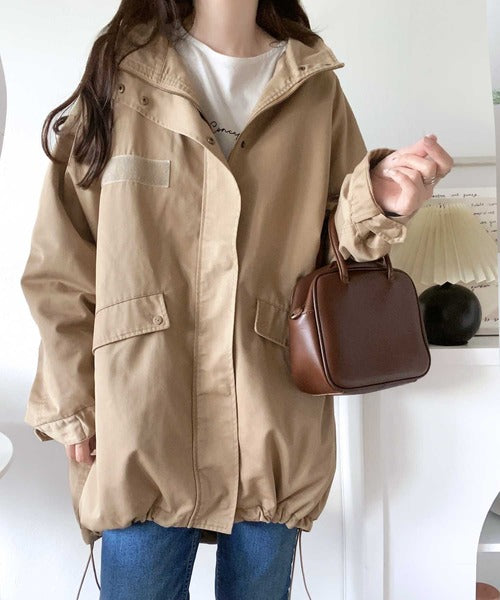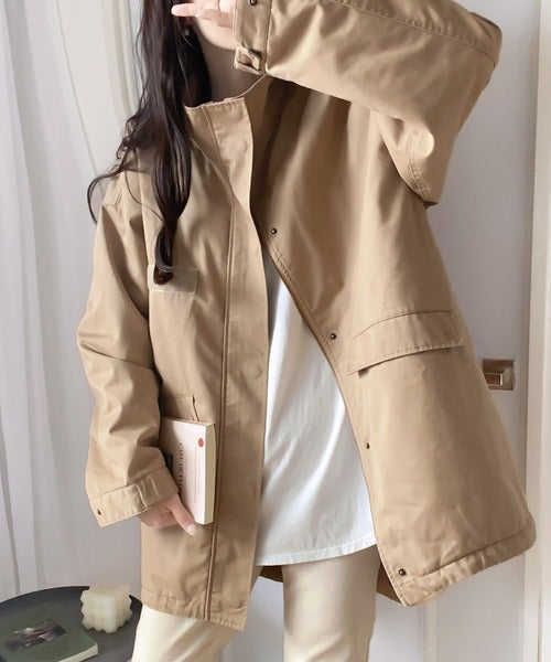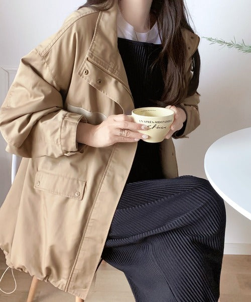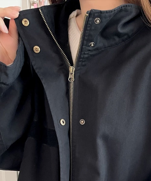 デザイン性と機能性を兼ね備えたトレンド感あるミリタリーコート。
