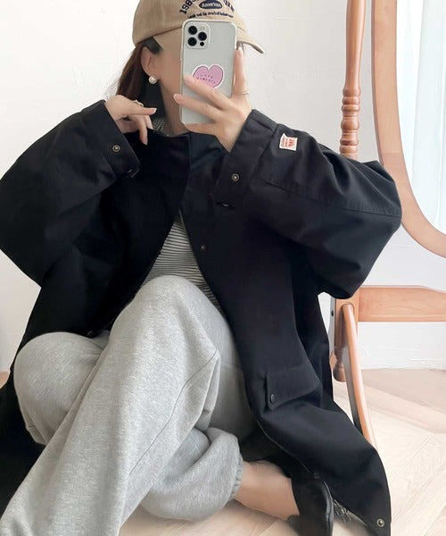 ゆったりオーバサイズなので薄手のニットをインナーに着ても着膨れせずこなれ感あるスタイリングを楽しめます。