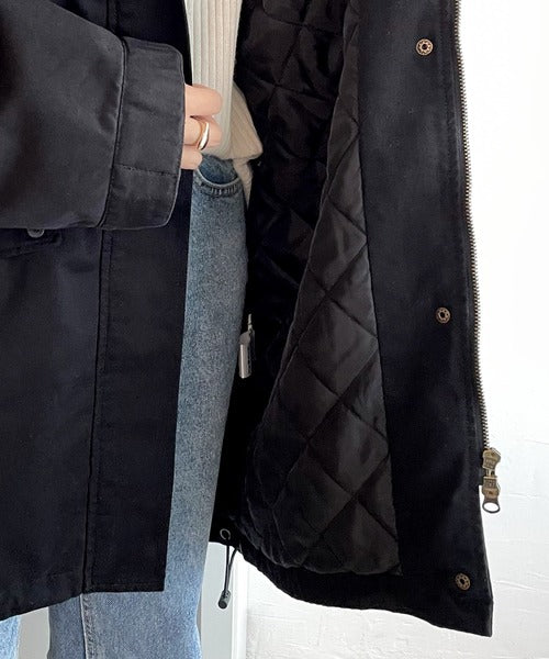 定番になりつつあるミリタリーデザインに内側はダイヤ中綿キルトで仕上げた機能性も高い1枚。