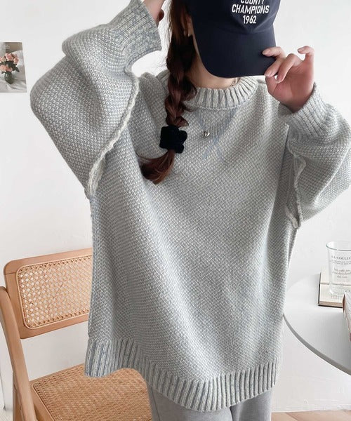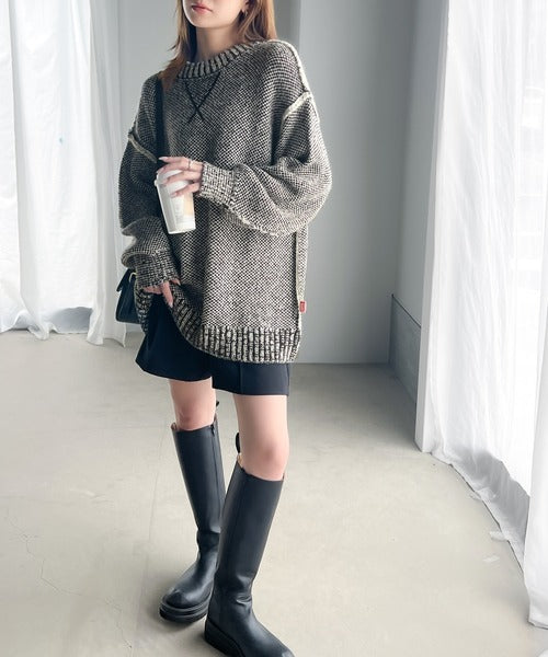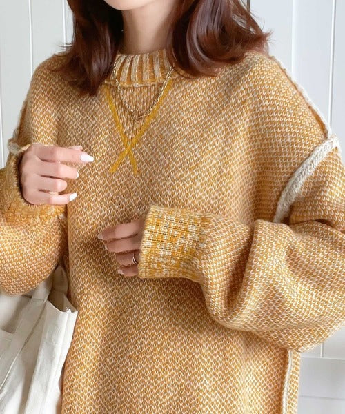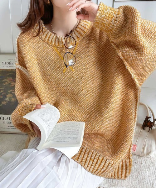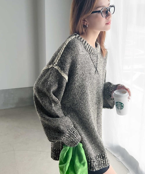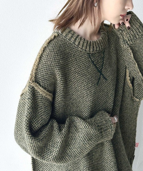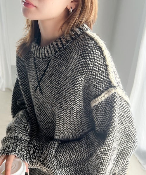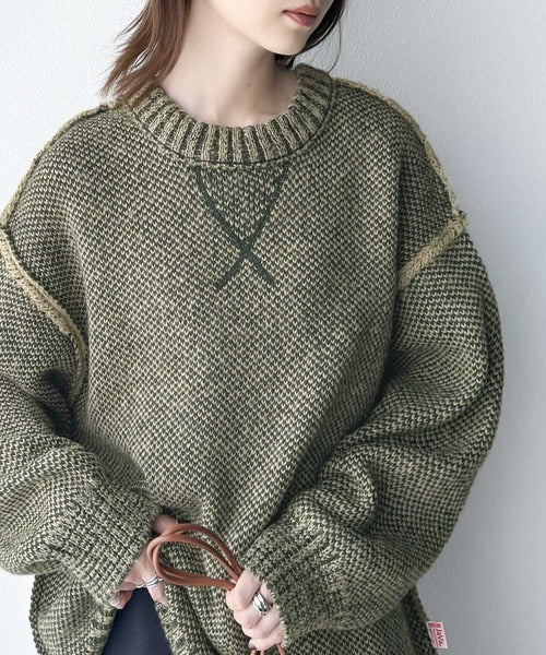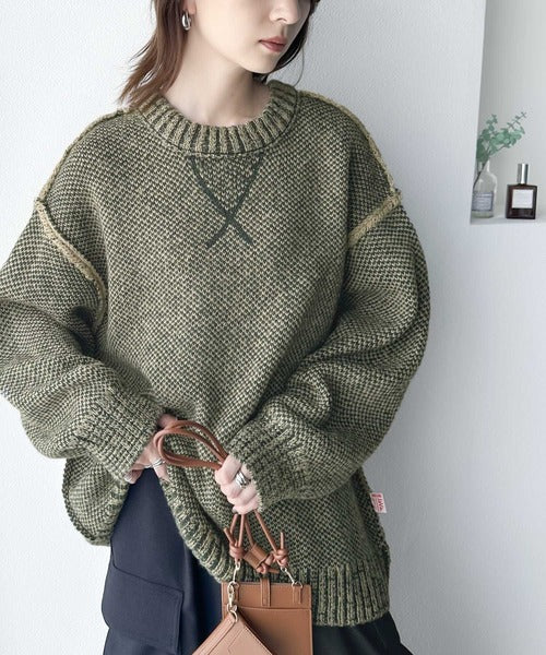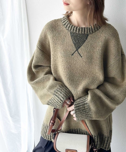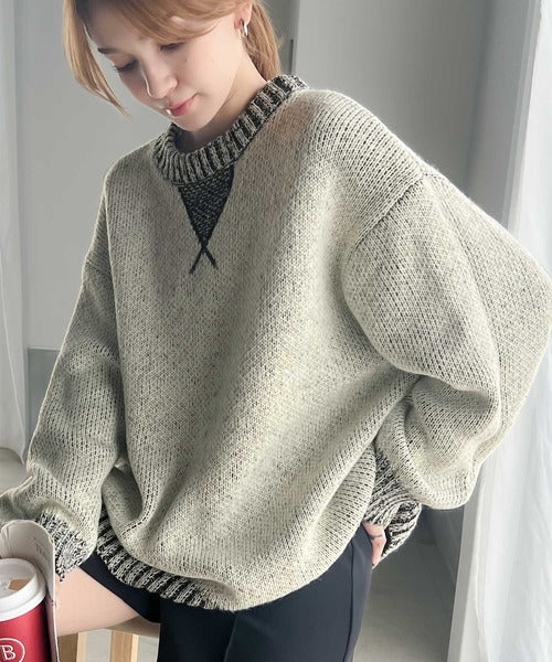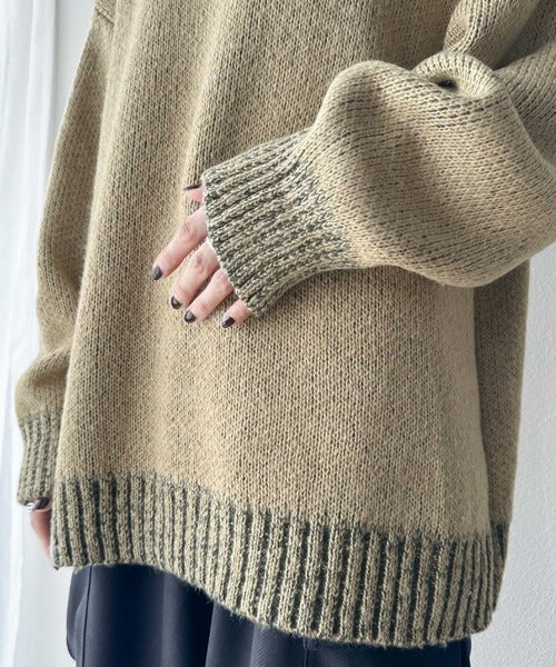 配色見えのダブルジャガードで、古着のようなざっくりとしたリブが印象的◎