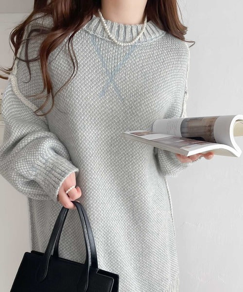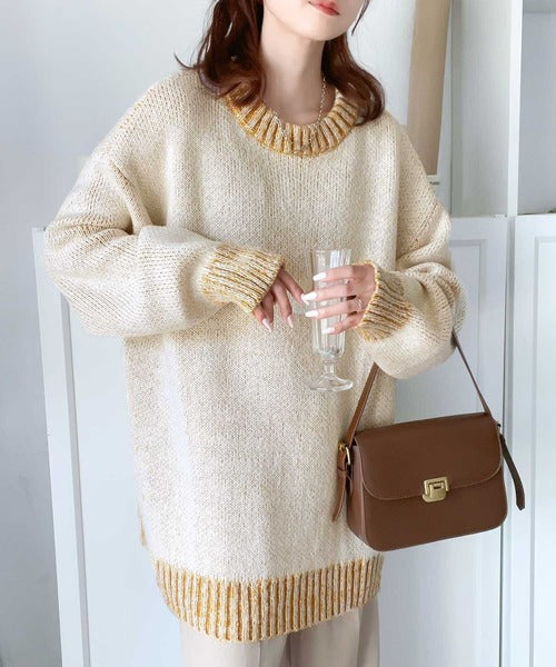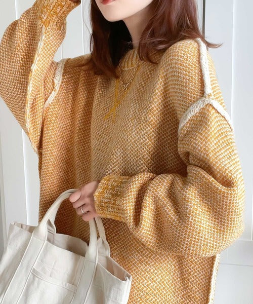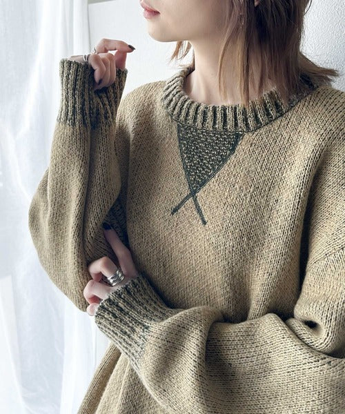 配色デザインが目を惹くプルオーバーニット。