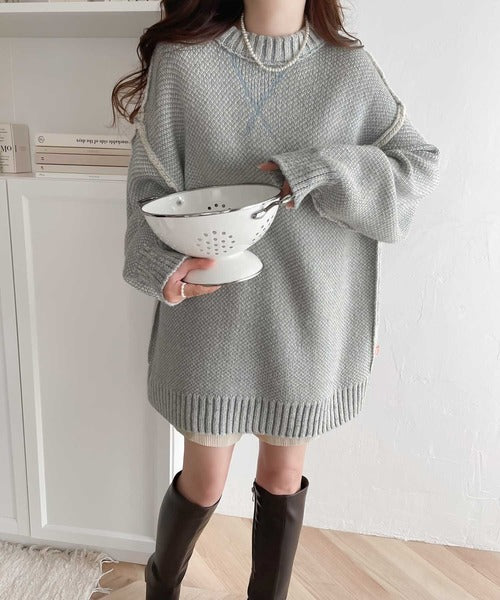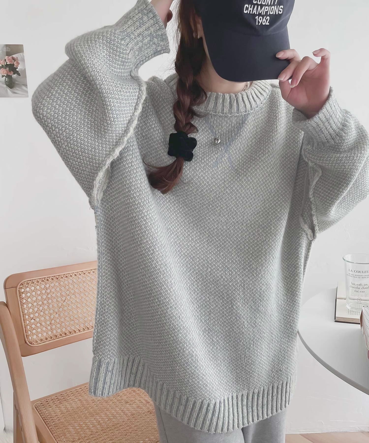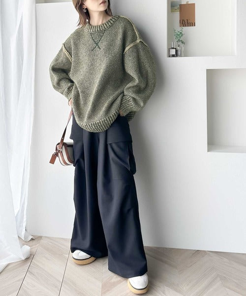 表裏で表情が変わる2WAYリバーシブル仕様のニットプルオーバー。