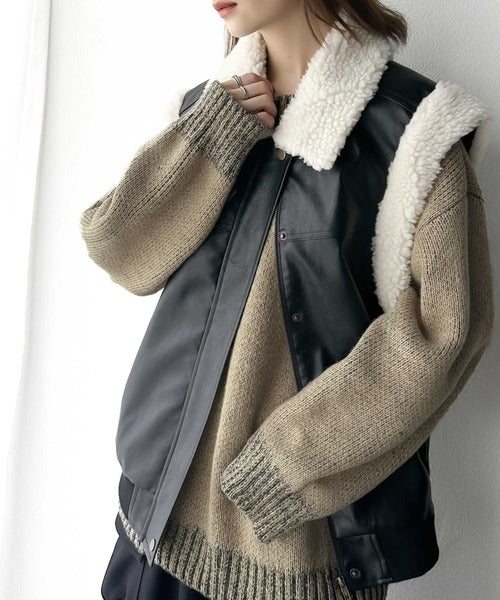 《Javaジャバコラボ》視線独り占め。2wayリバーシブル襟配色Wジャガードニット jv1260041