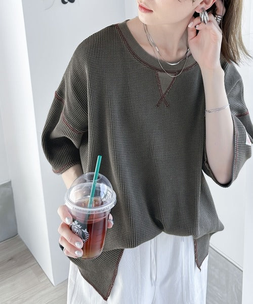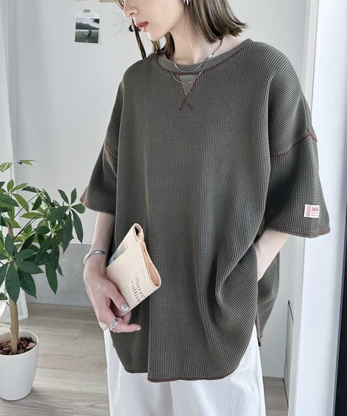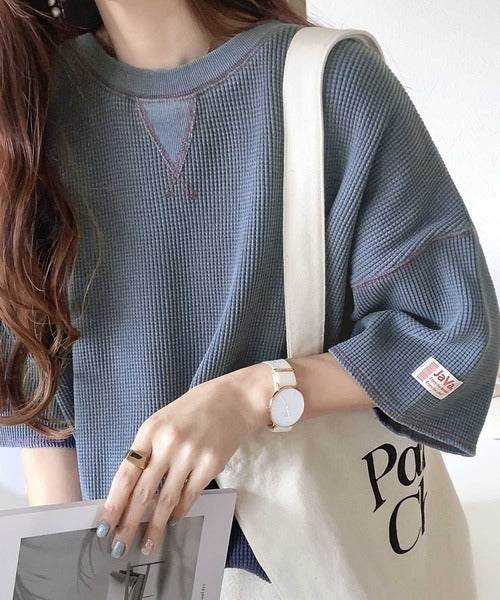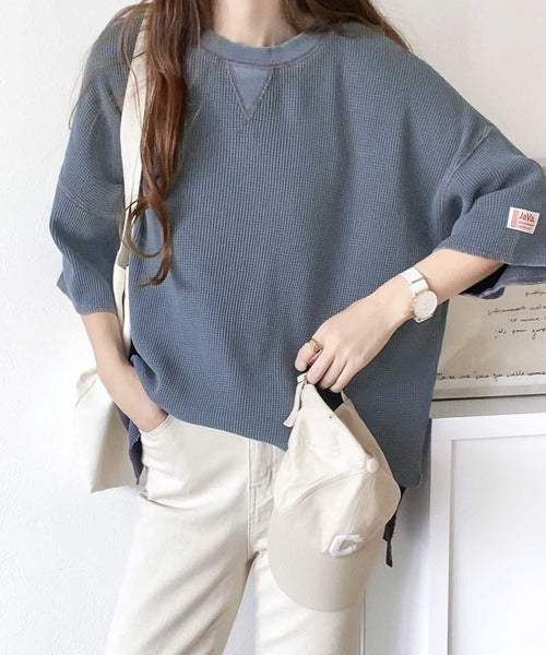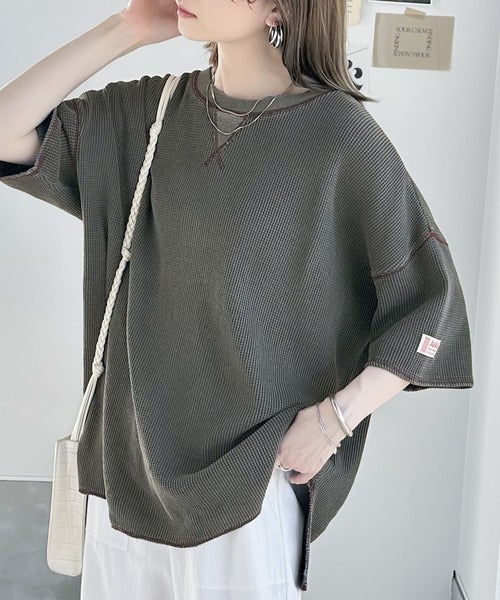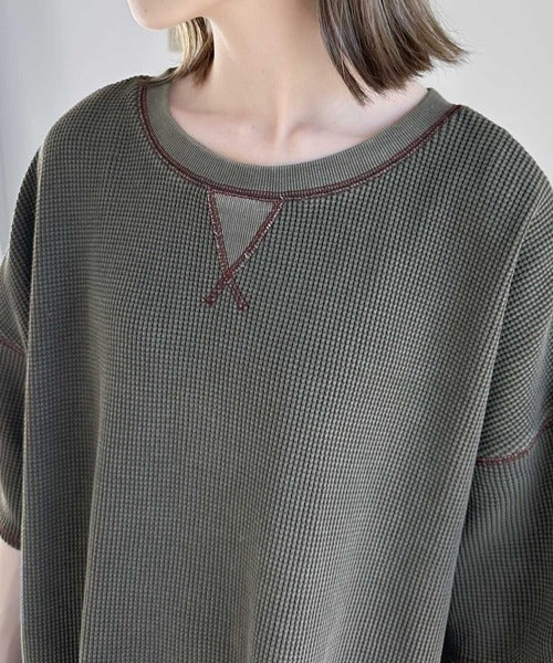 ピグメント加工を施したヘビーウエイトワッフル素材。