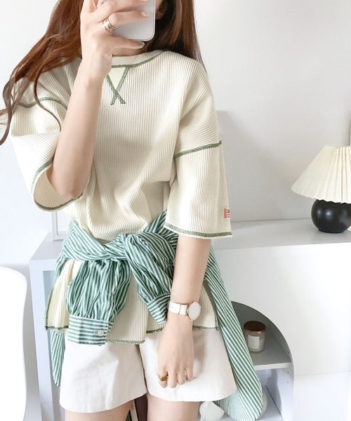 《メンズもお揃いで着れちゃう、ワッフルTシャツ》