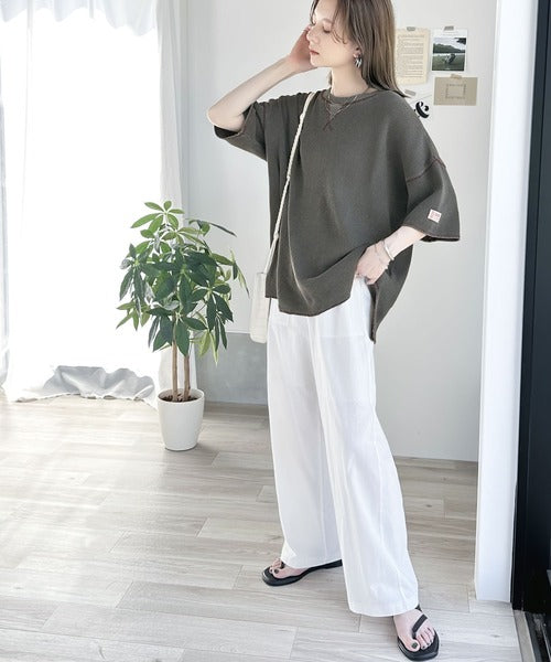 ゆるやかなドロップショルダー&半端袖で華奢見え効果ばっちり。