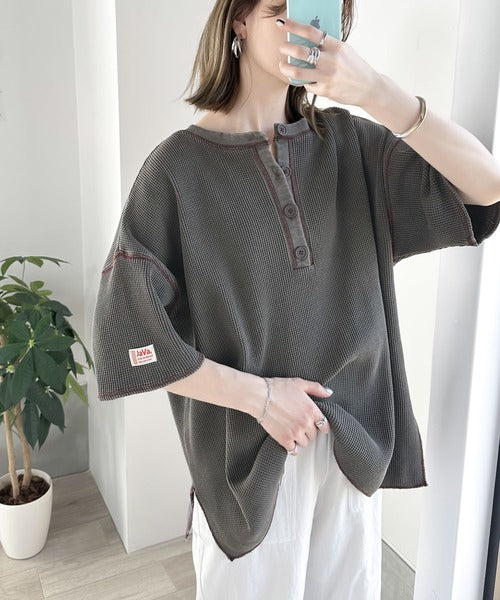 《JAVAジャバ 別注》ラフヴィンテージ。2wayピグメントワッフル バックヘンリーPO jv1260048
