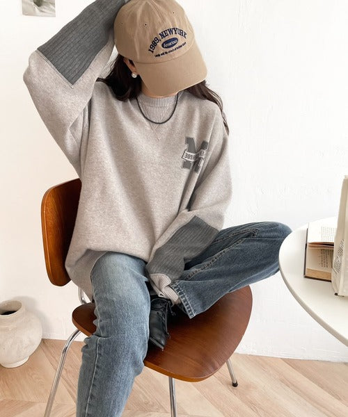 異素材使いのエルボーパッチや襟元ガゼット仕様など拘りディテールの詰まったオーバーサイズプルオーバーです。