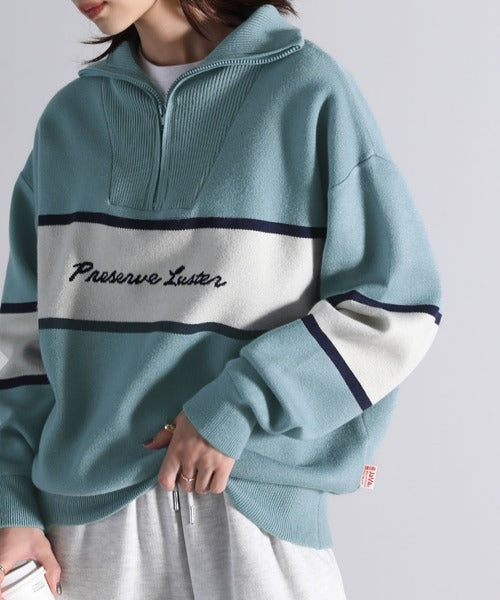 《JaVaジャバ コラボ》とっておきのスポーティー Wジャガードハーフジップニット jv1260078
