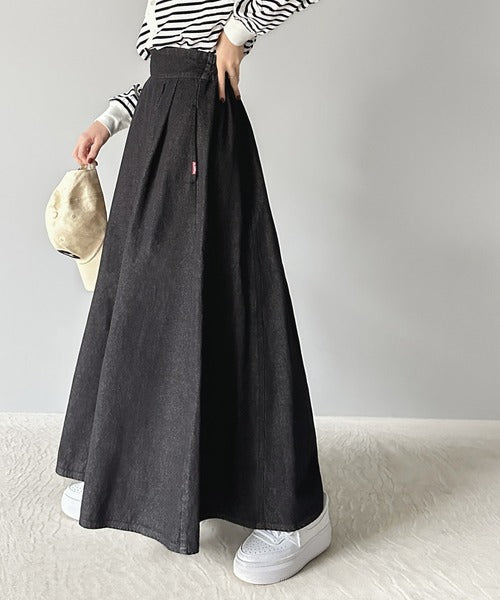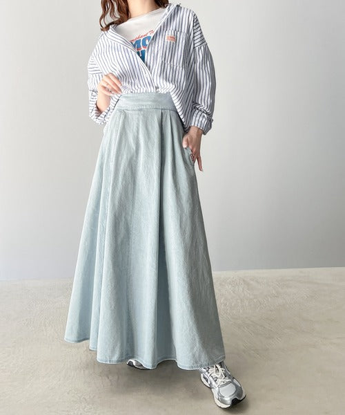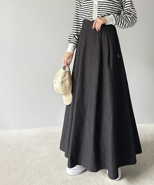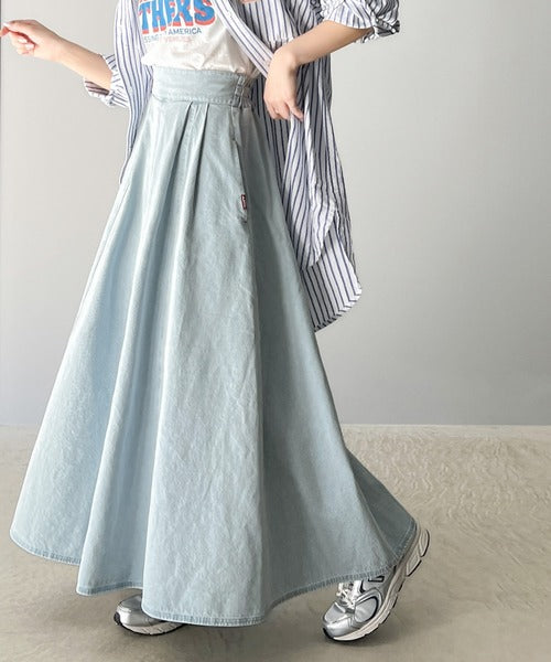 《Javaジャバコラボ》ハイウエストでシルエットがキマル!綿100%のやわらかデニムフレアスカート jv1260095