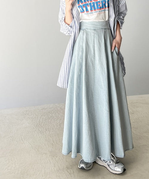 歩くたびに揺れるフレア感!やわらかデニムで作った