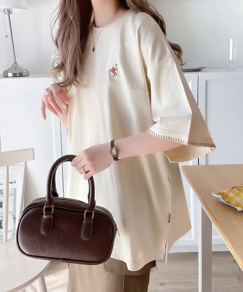 胸元のさりげないワンポイント刺繍がさらに雰囲気UP!