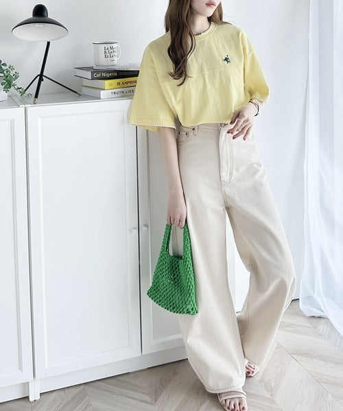 ハンドメイド風の配色刺繍を部分的に入れ少しポップな雰囲気に仕上げつつも、カジュアルなムードをプラスしました。