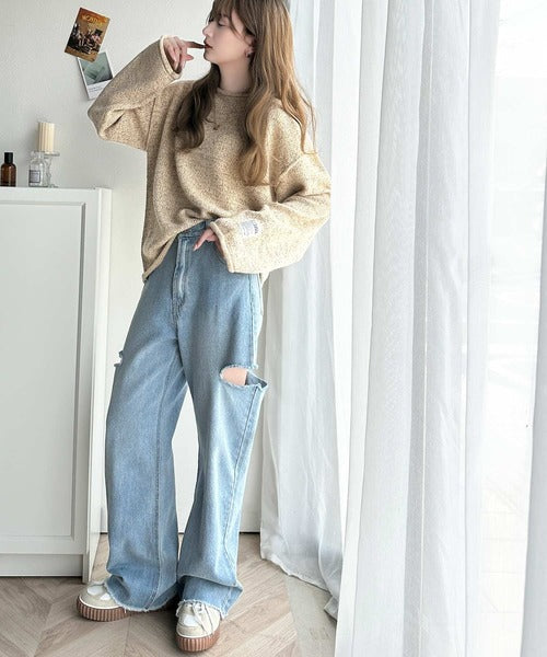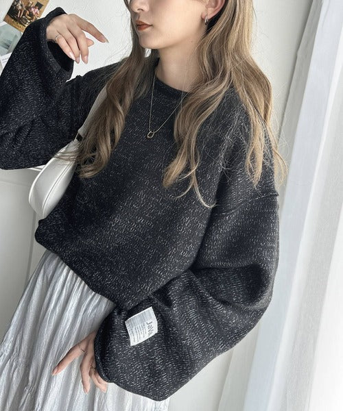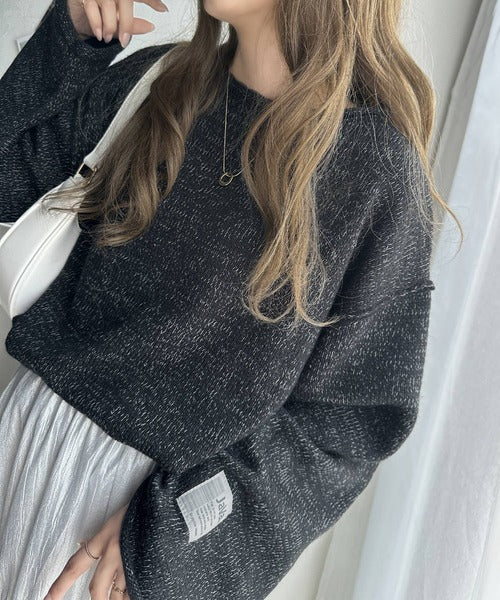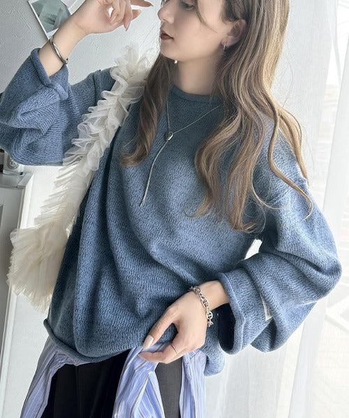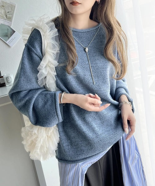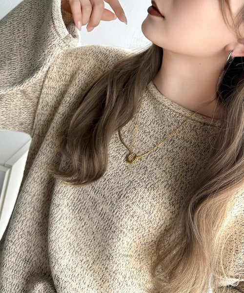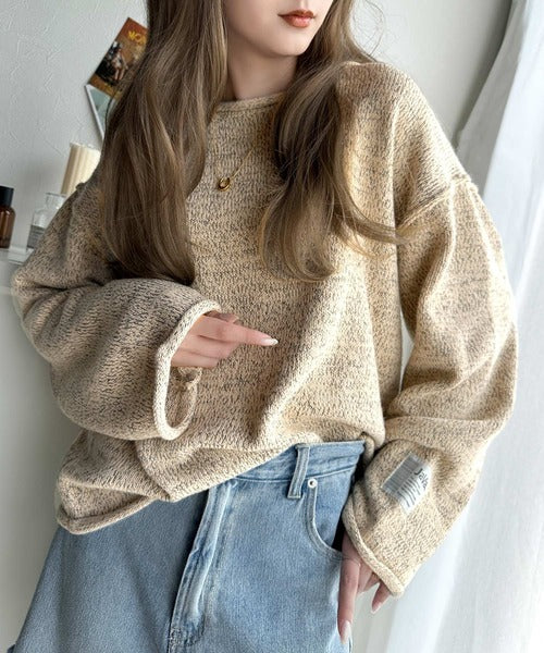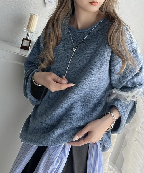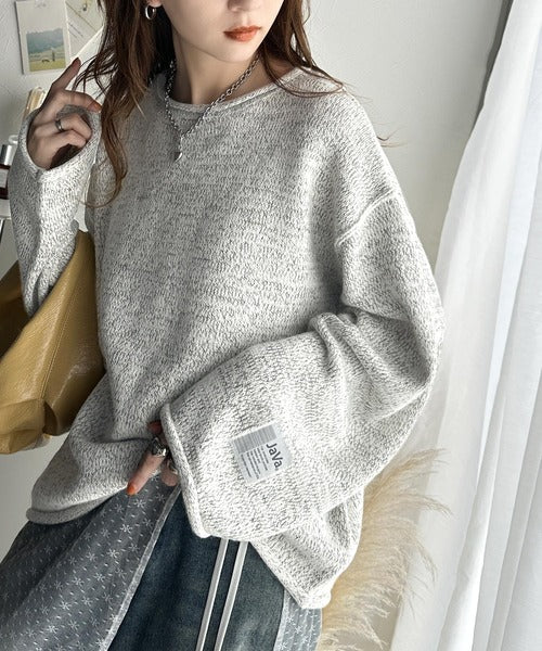 カットソーのような雰囲気漂うミックスカラーニットプルオーバー。