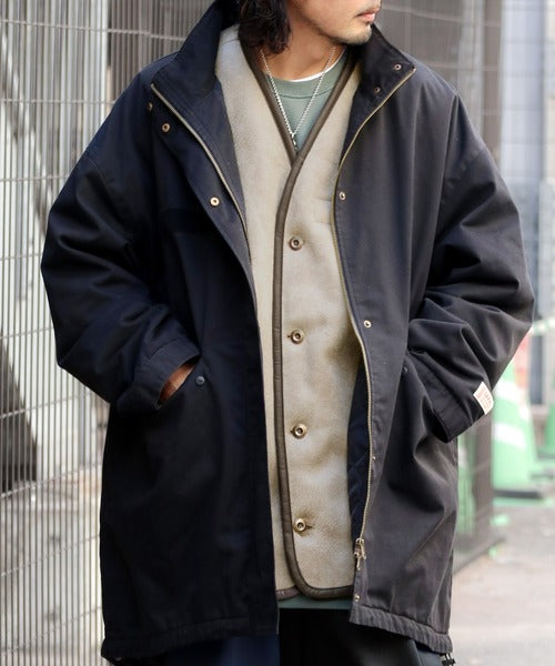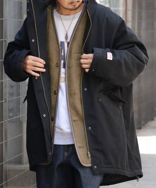 ゆったりとしたシルエットなので、今年はM-65などミリタリーコートの上にコーディネートするのがオススメ。