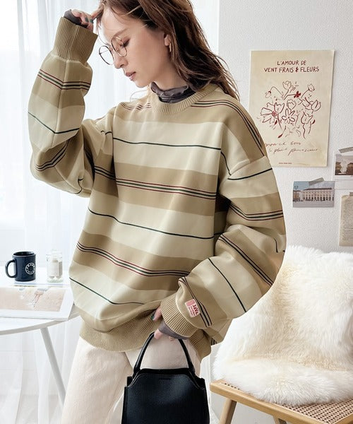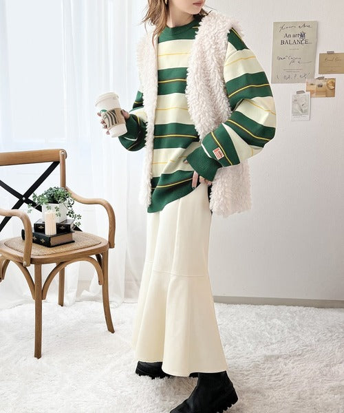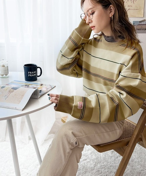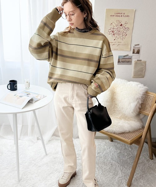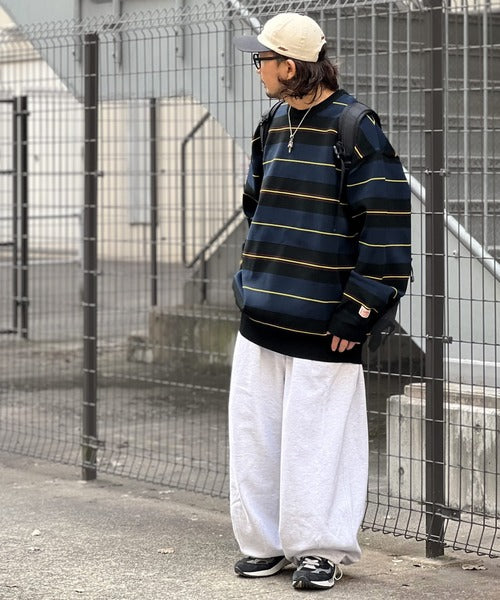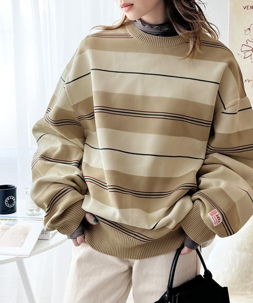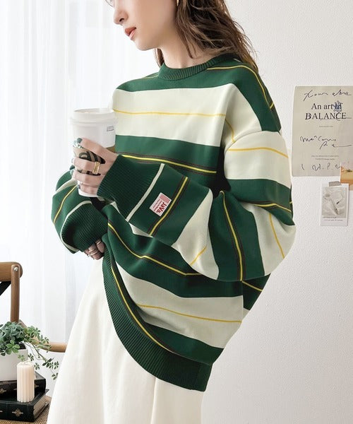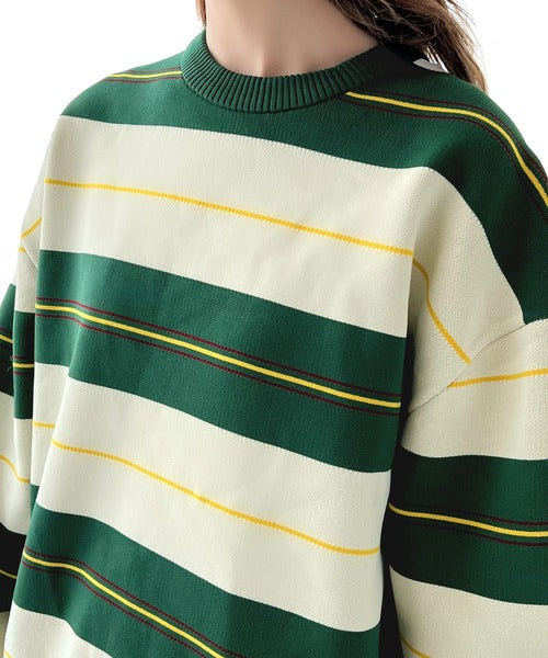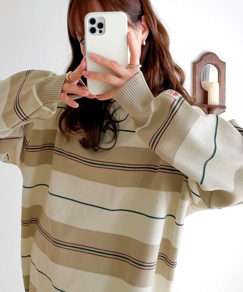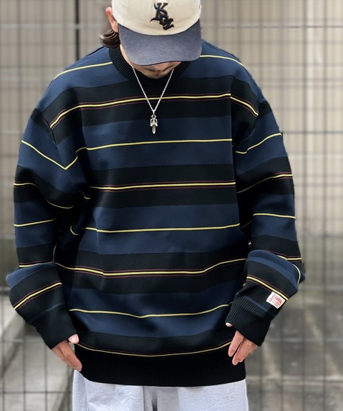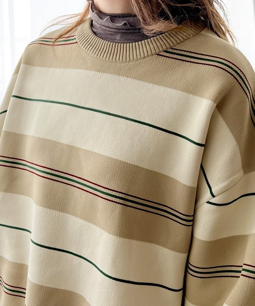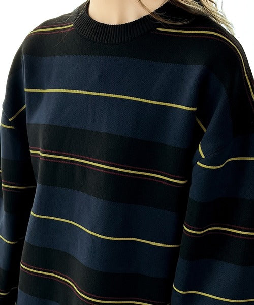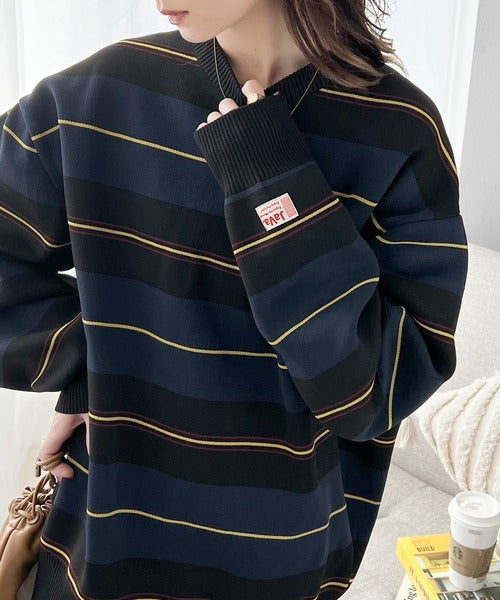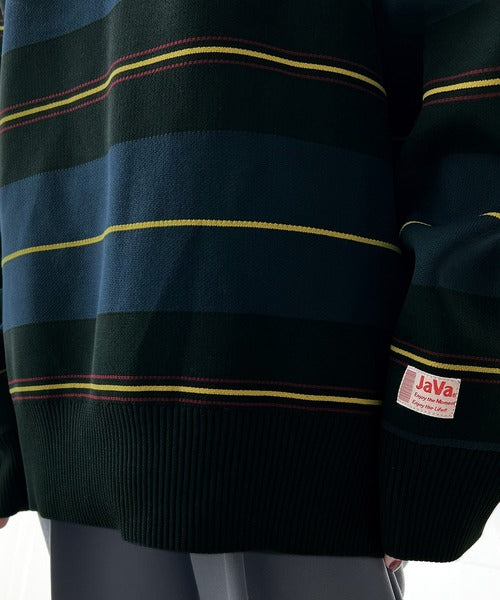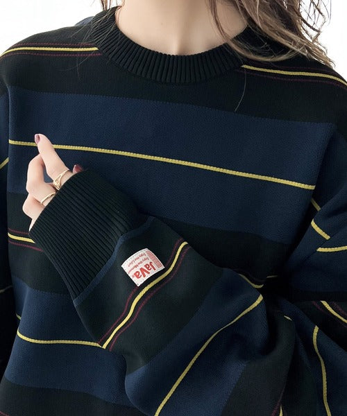 《JaVaジャバ コラボ》レトロ魅せ。マルチボーダーオーバーサイズニット jvm1160008