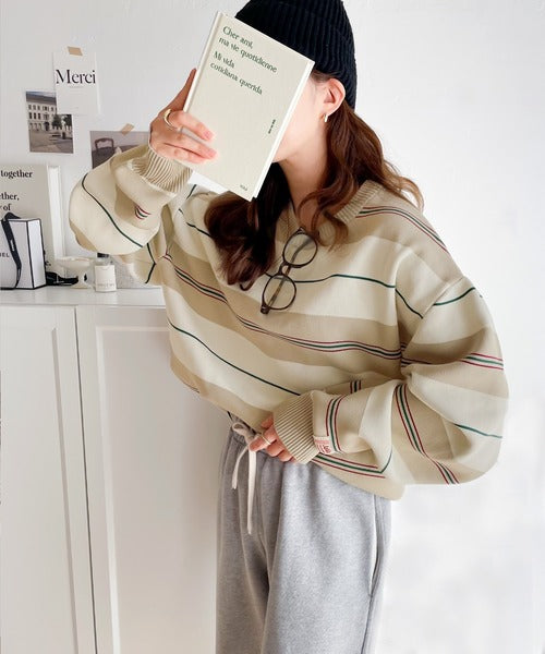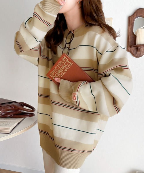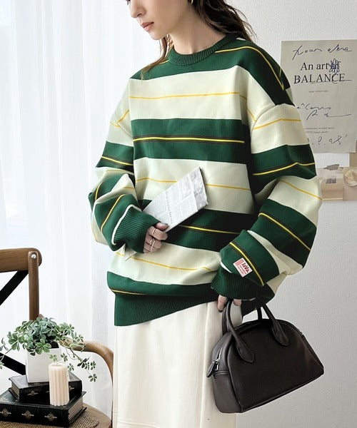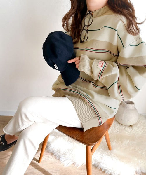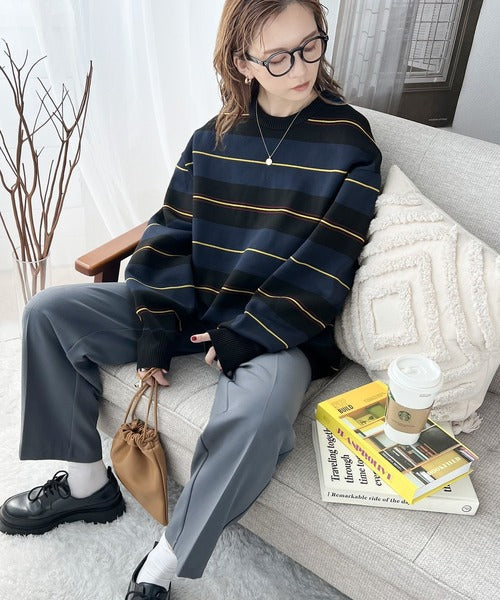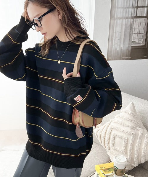 ゆるっとオーバーサイジングのマルチボーダーニット。