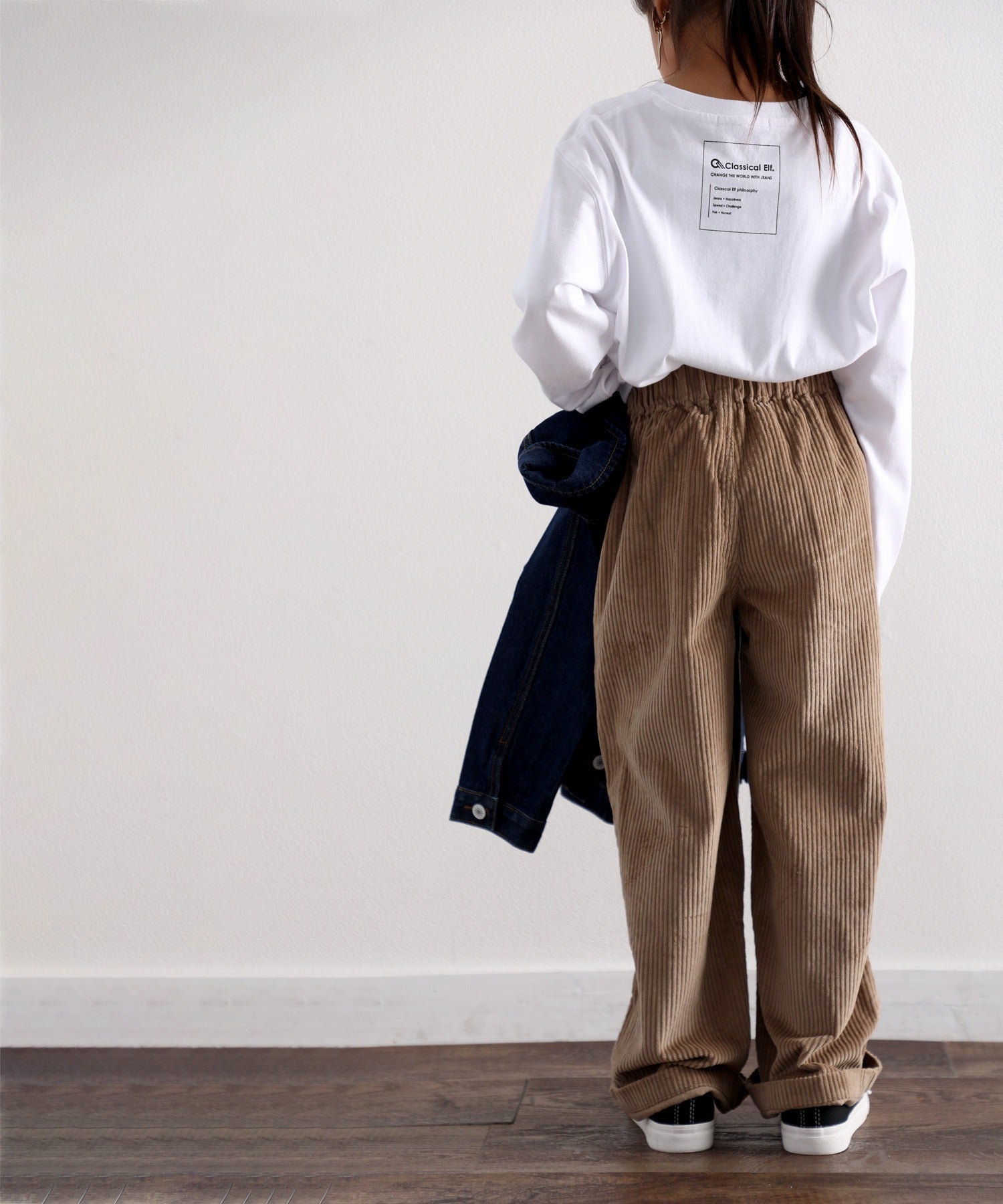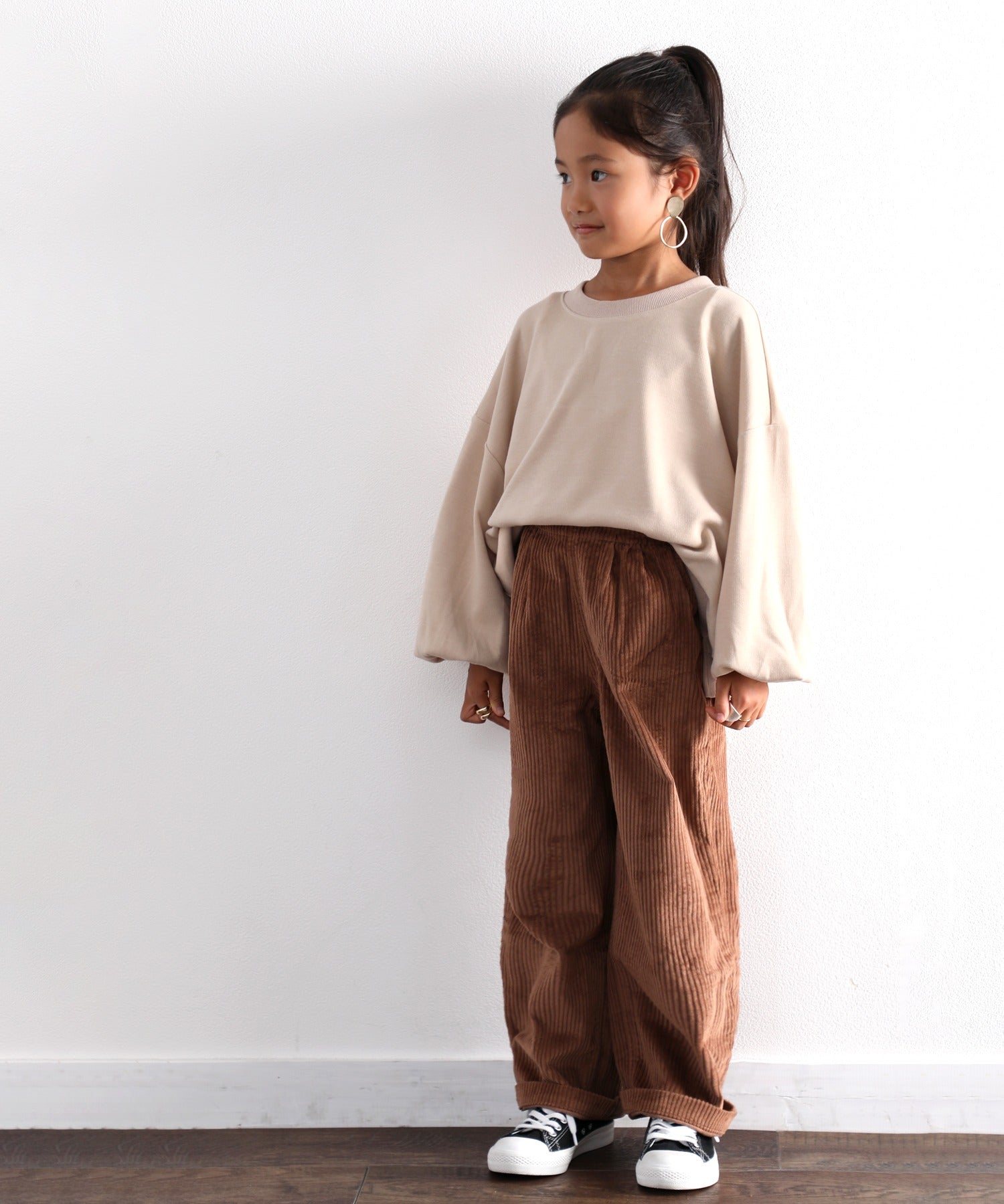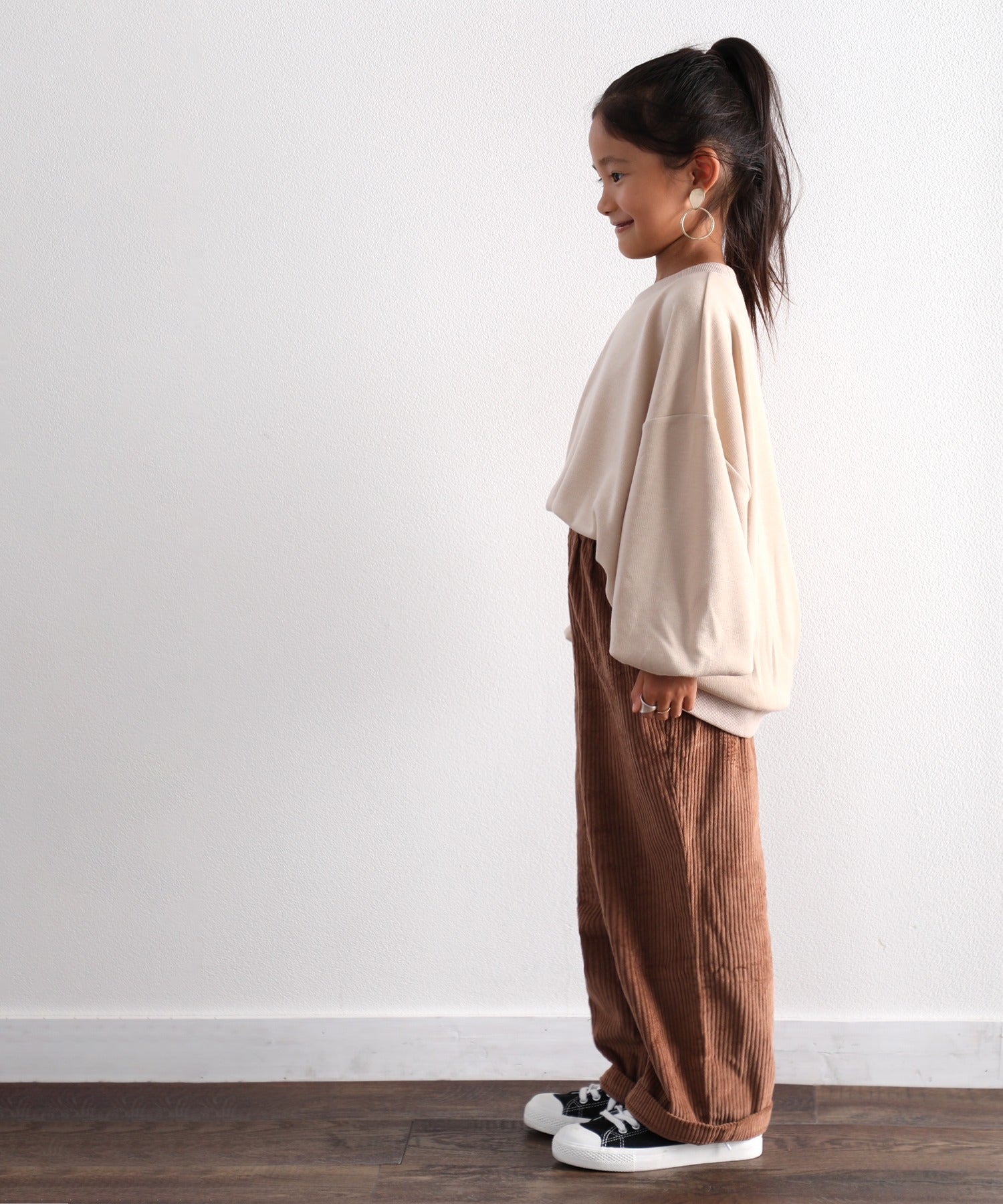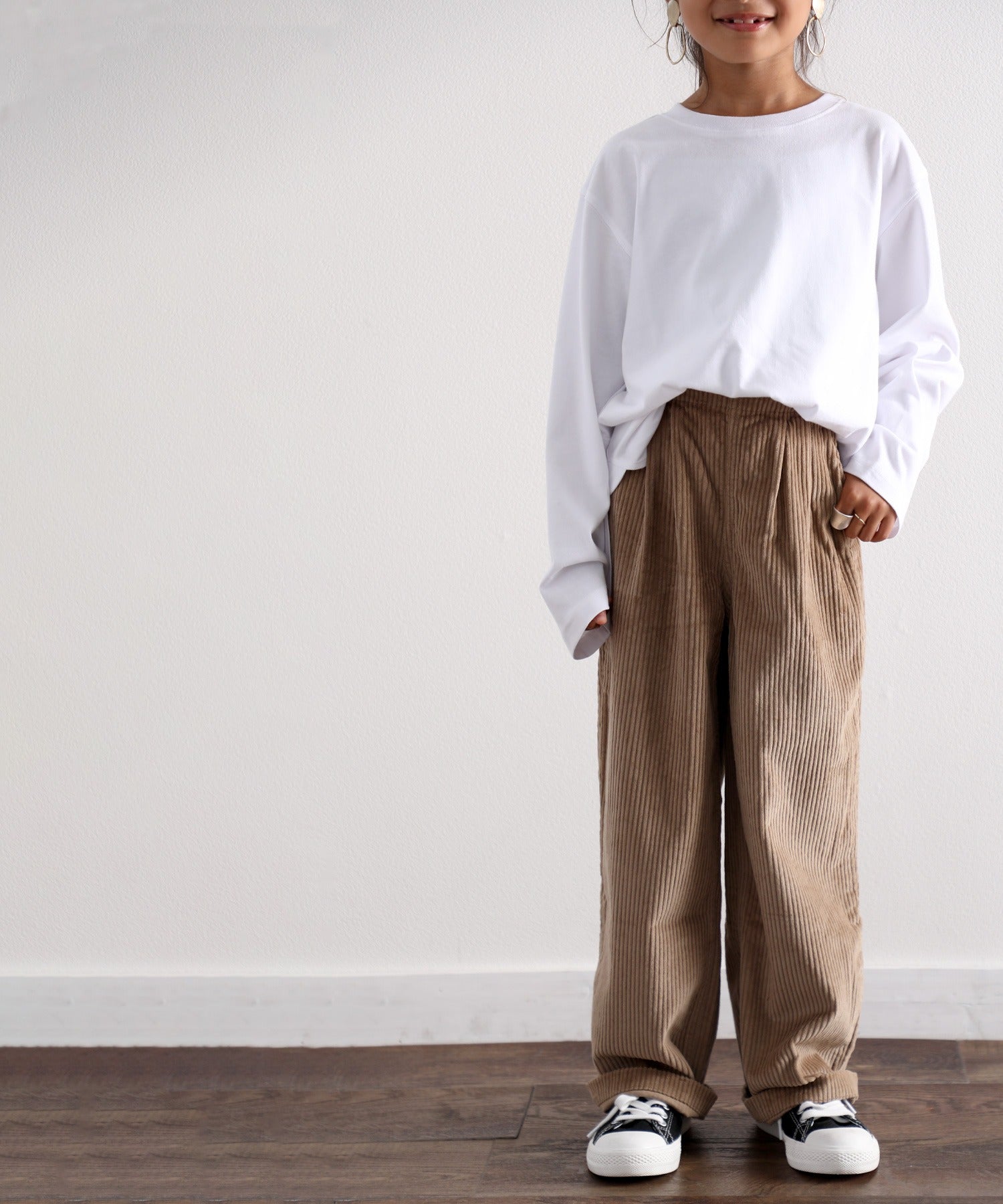【family+】【親子コーデ】キッズ 無地ワイドパンツ(フルレングス) kcl10033