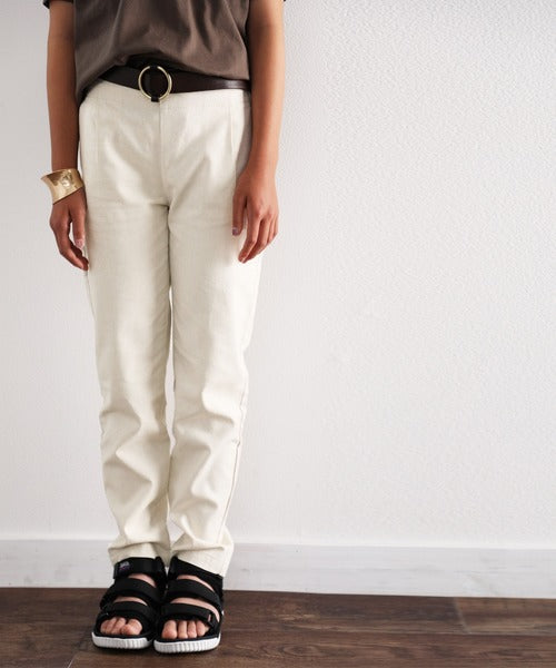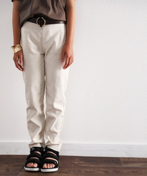 綿が混ざることで特有の柔らかな肌触りはそのままのズボンです。