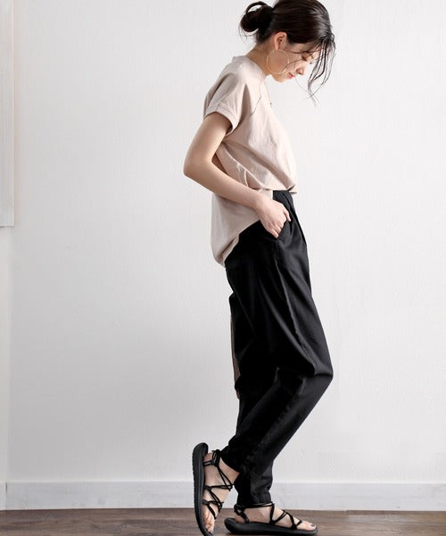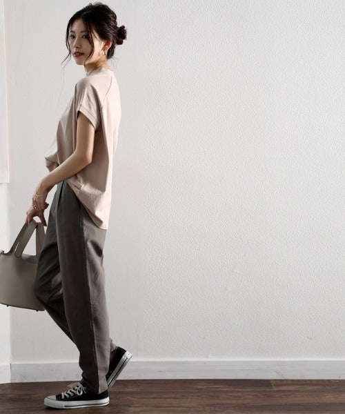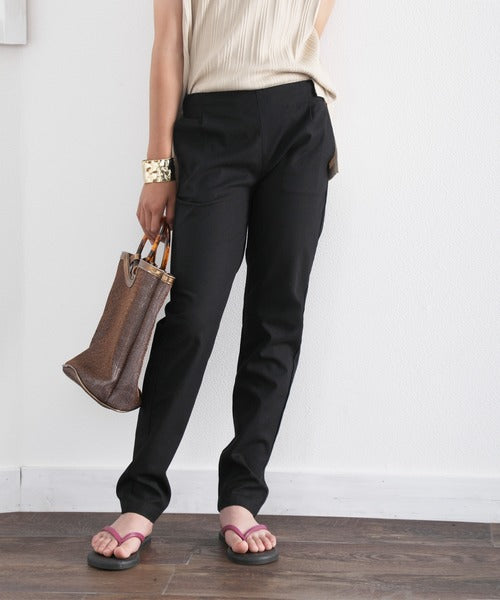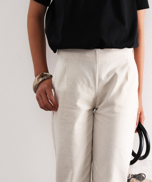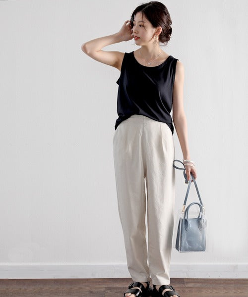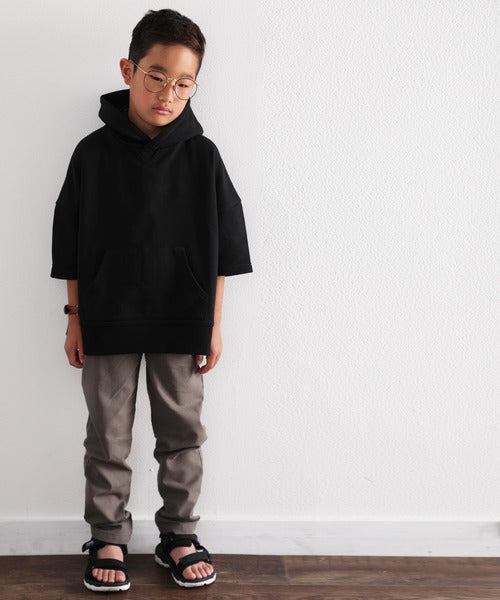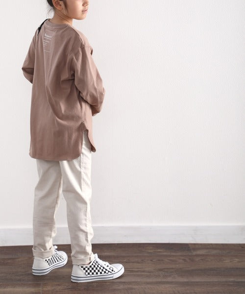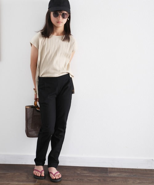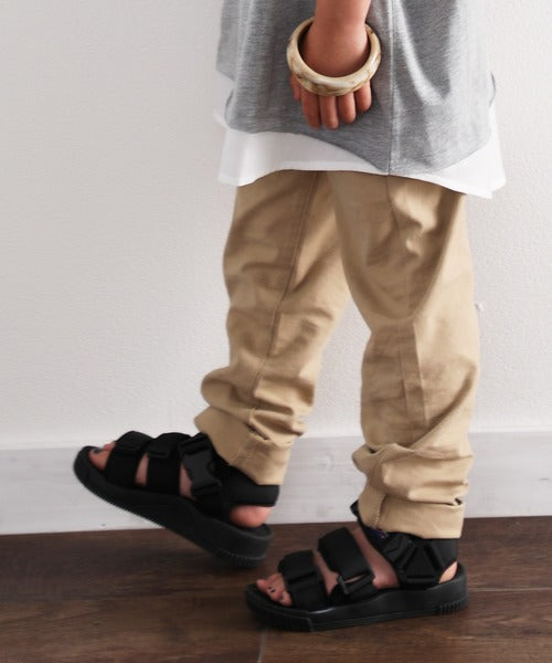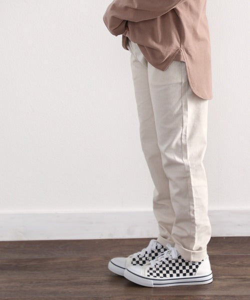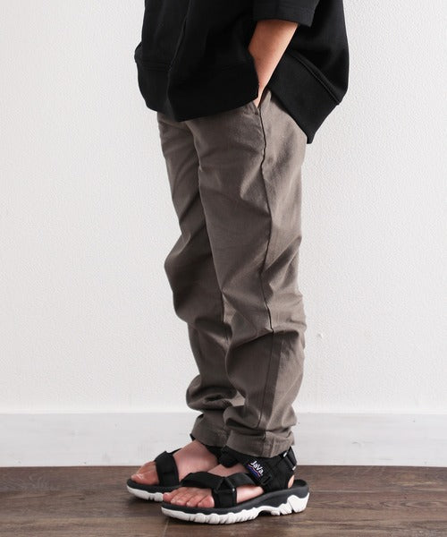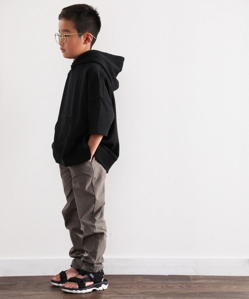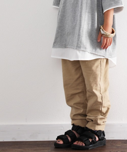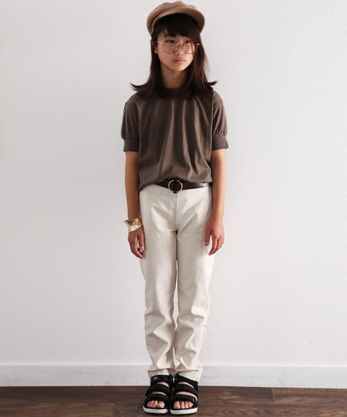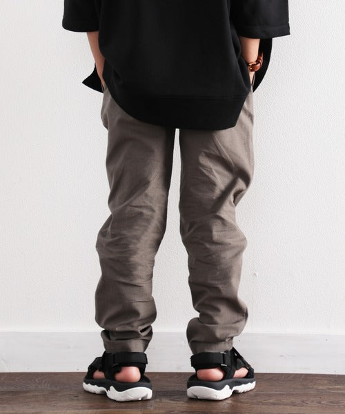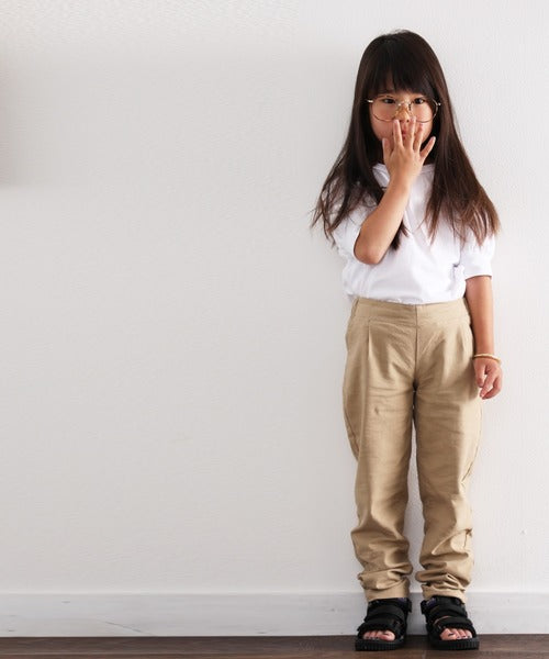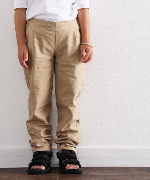 【family+】【親子おそろい】キッズ タック入り無地リネンテーパードパンツ(フルレングス) kcl10041