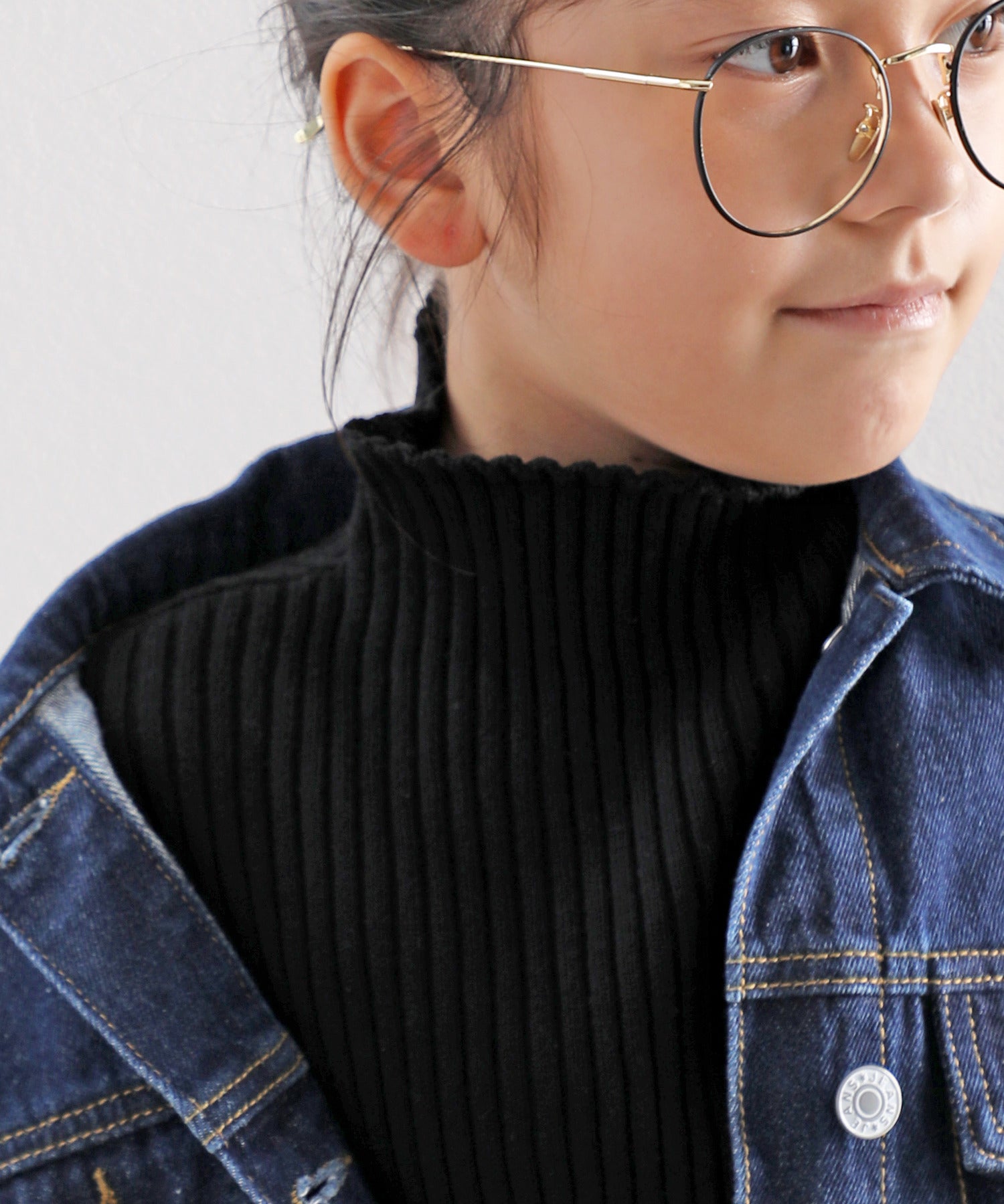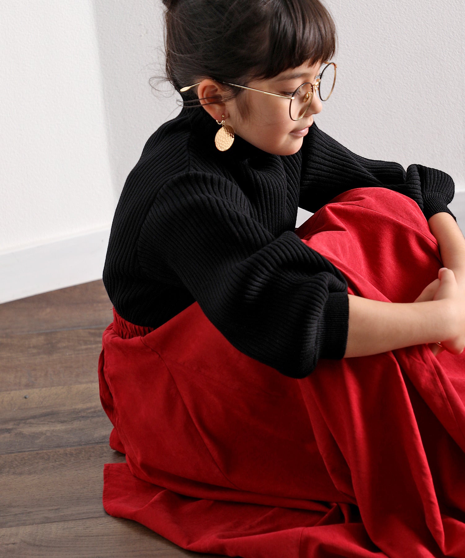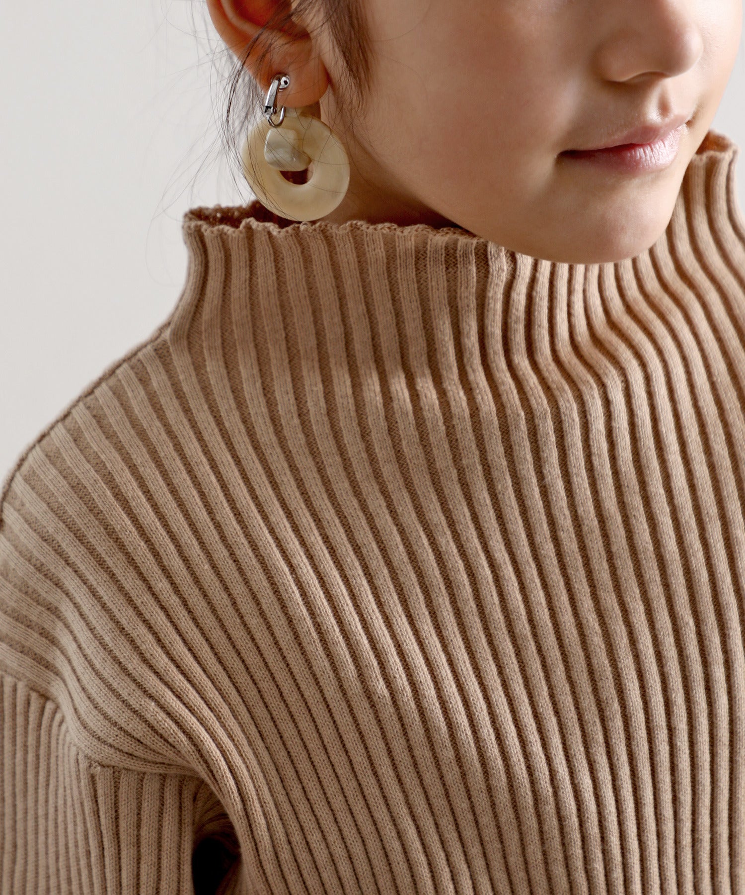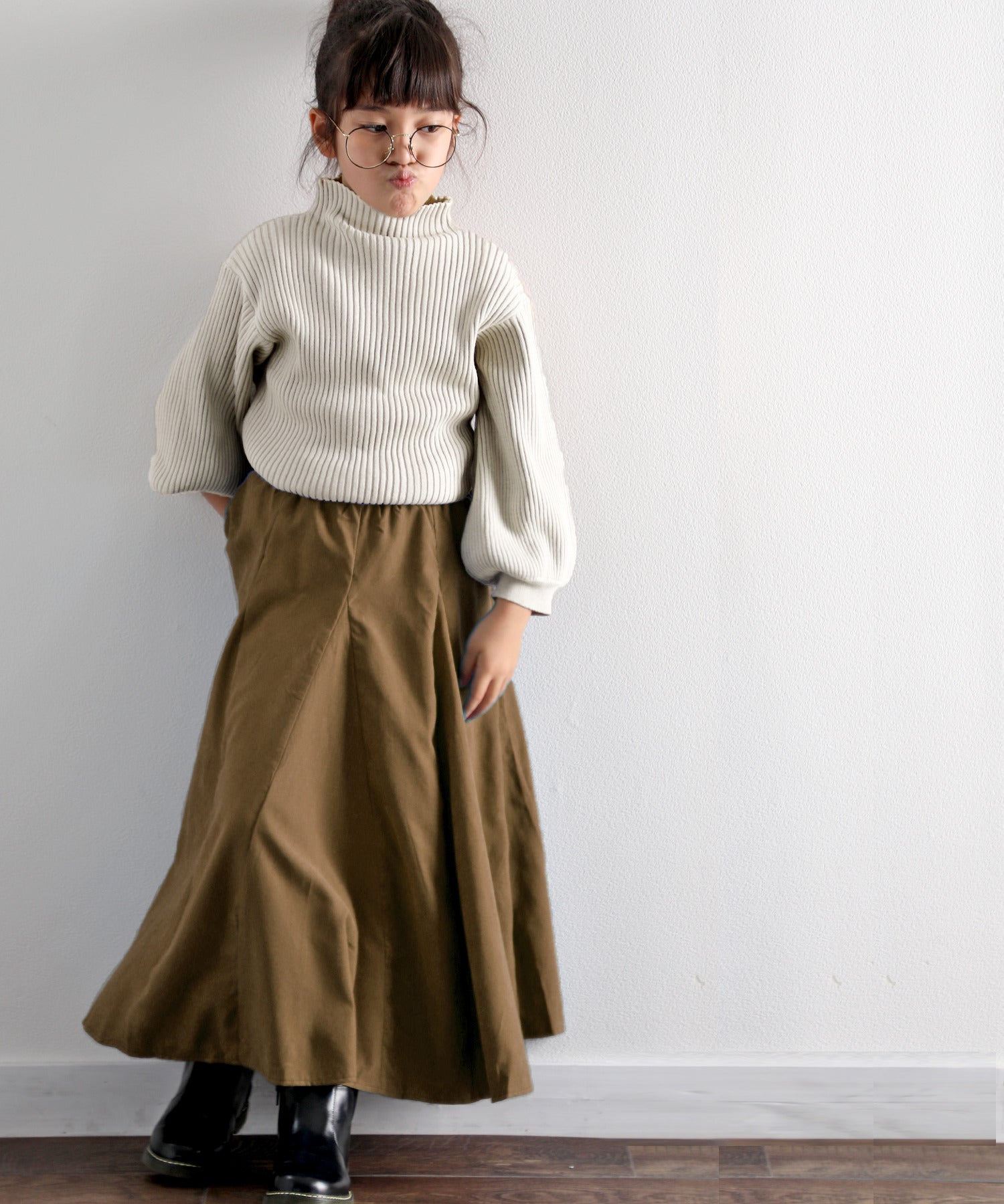 【family+】【親子コーデ】キッズ ワイドスリーブハイネックミドル丈コットンリブニット(長袖) kcl7004