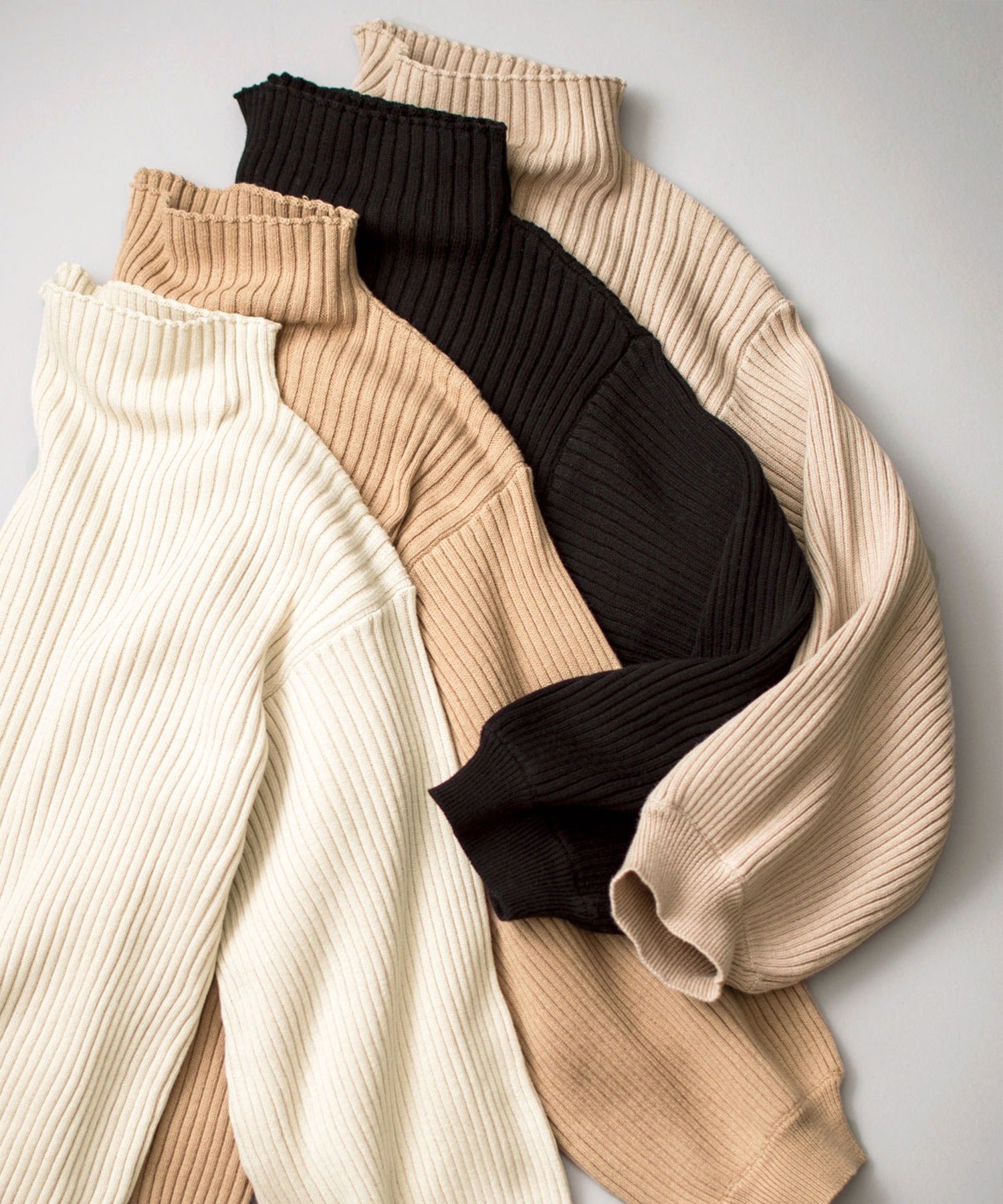 絶妙なシルエットで体にやさしくフィットするリブニットカットソー。