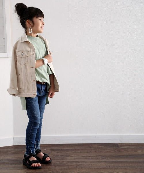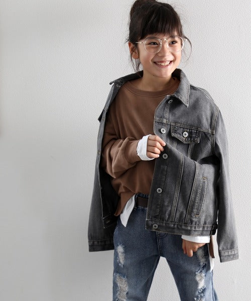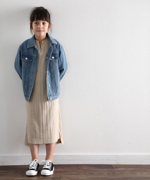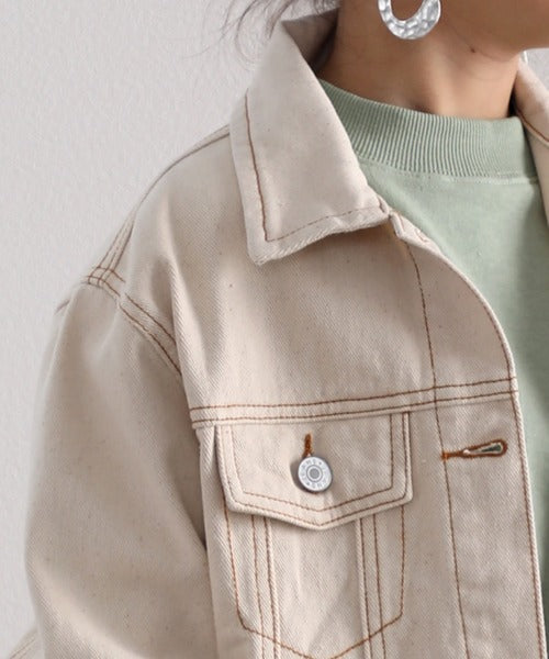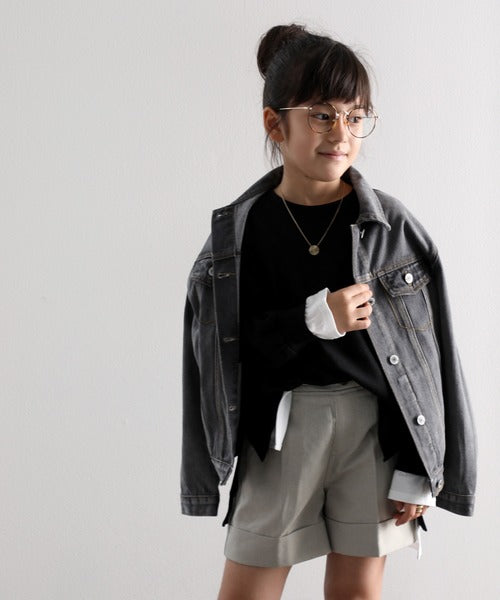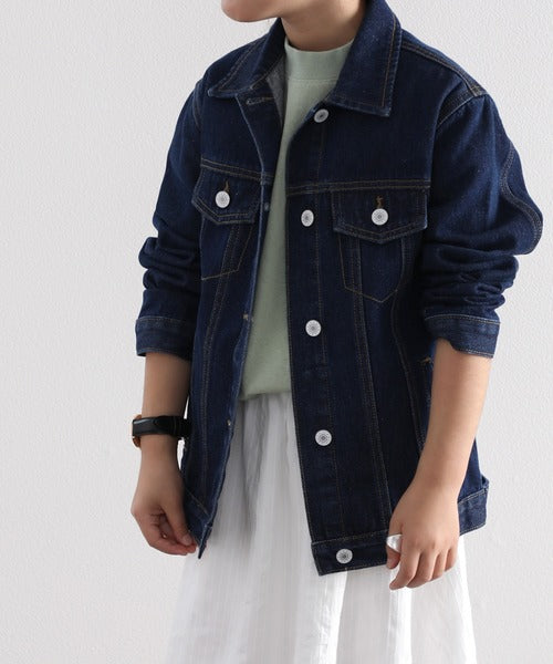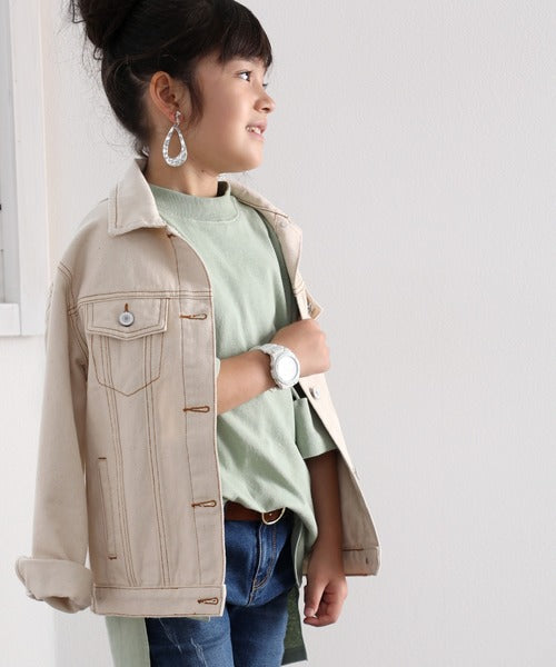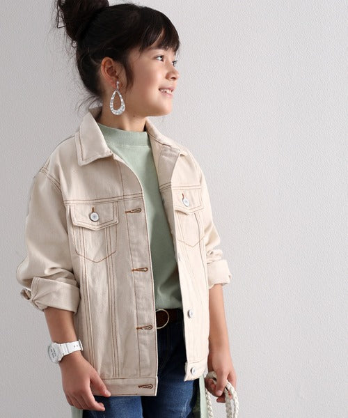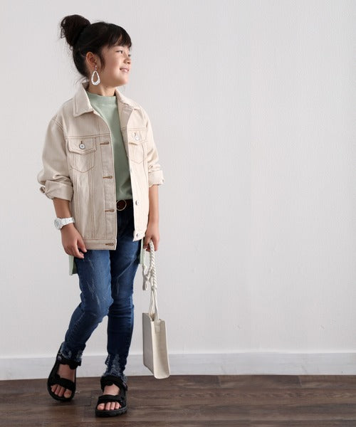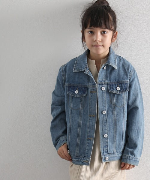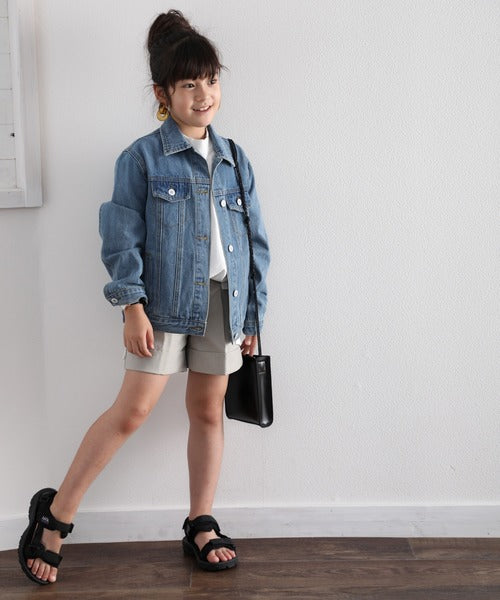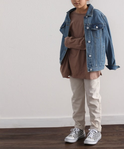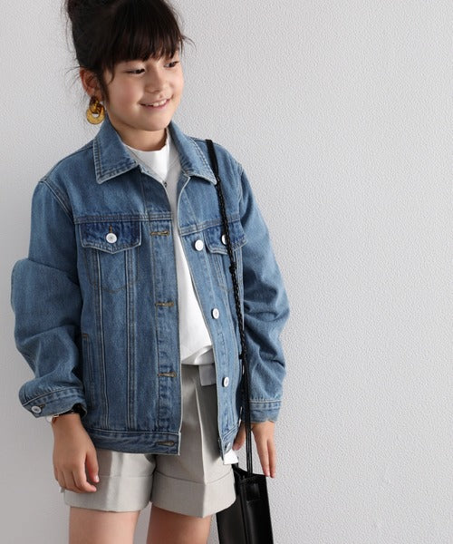 【family+】【親子おそろい】キッズ ビッグシルエット無地ボタン留めデニムジャケット・Gジャン kcla64013