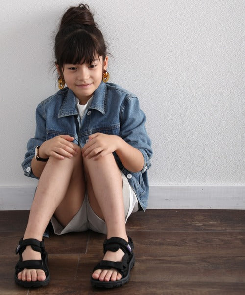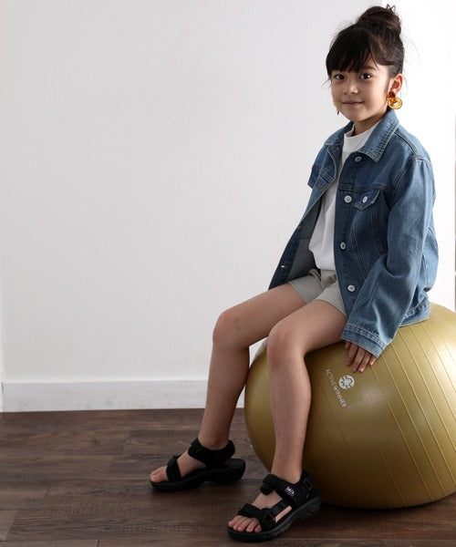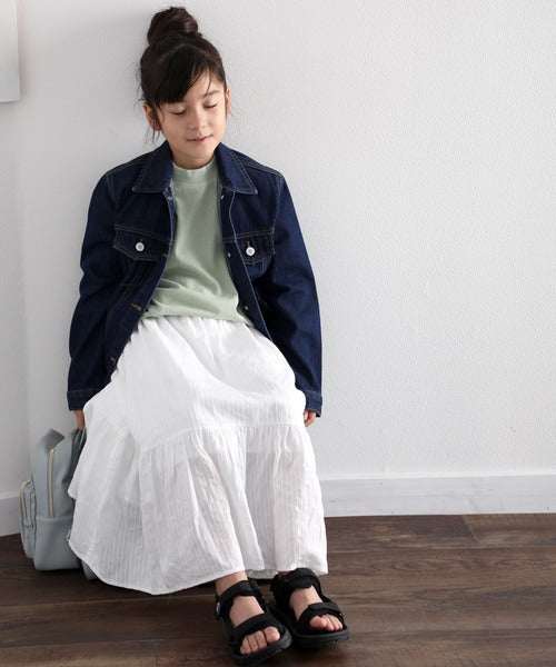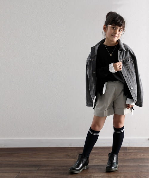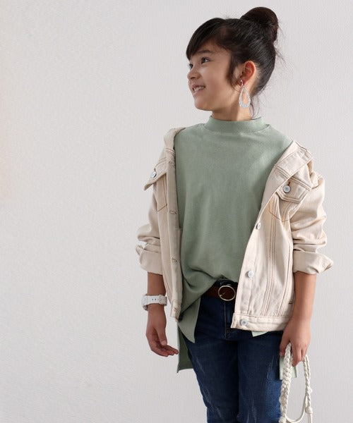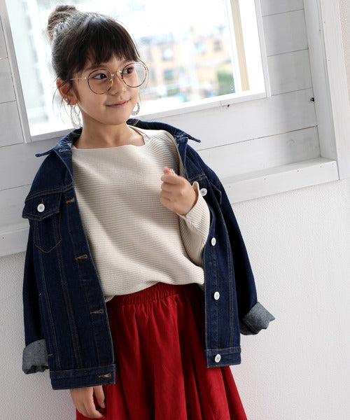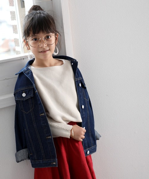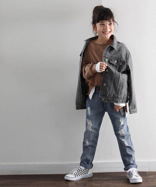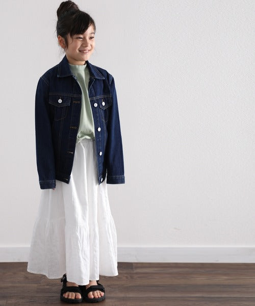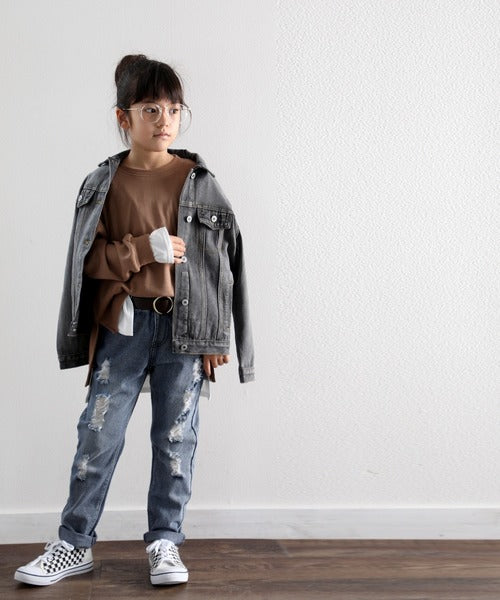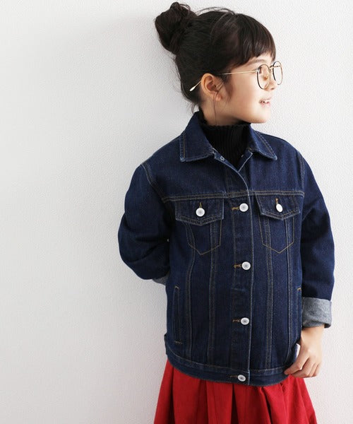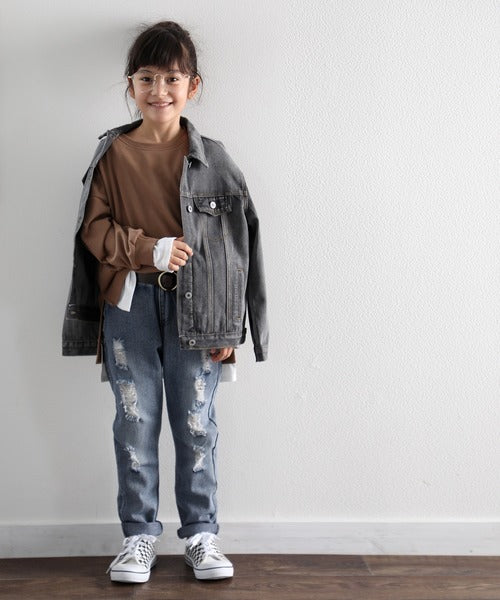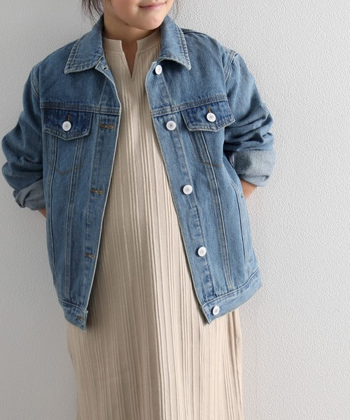 【family+】【親子おそろい】キッズ ビッグシルエット無地ボタン留めデニムジャケット・Gジャン kcla64013