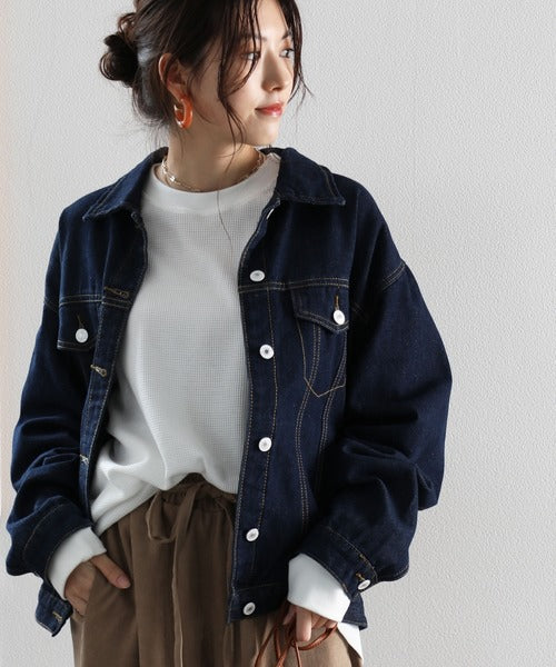 ベーシックデザインでコーデがしやすいデニムアウターです。
