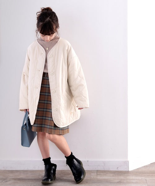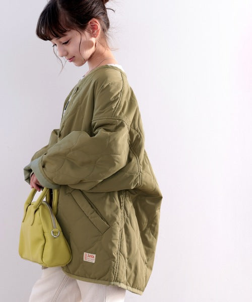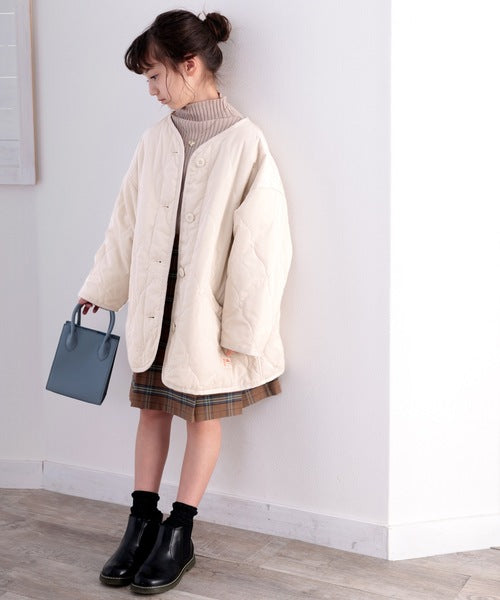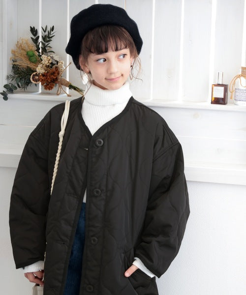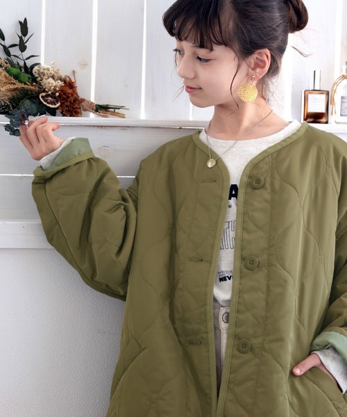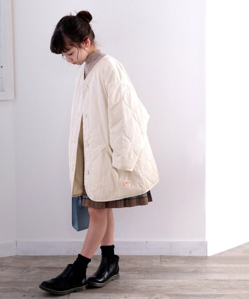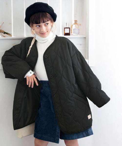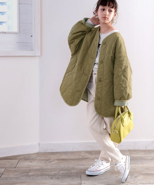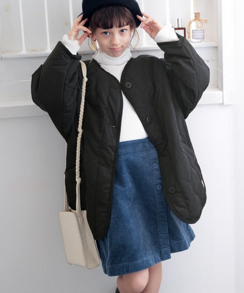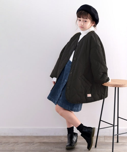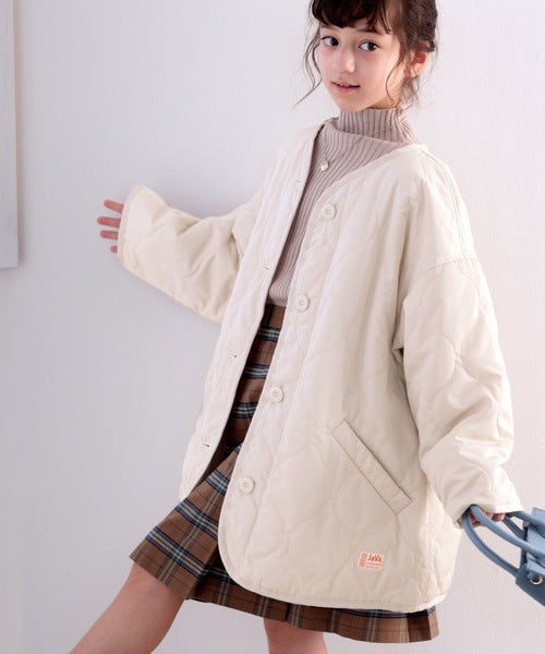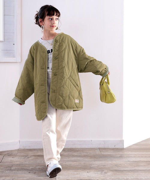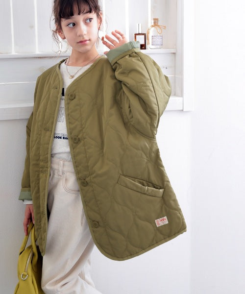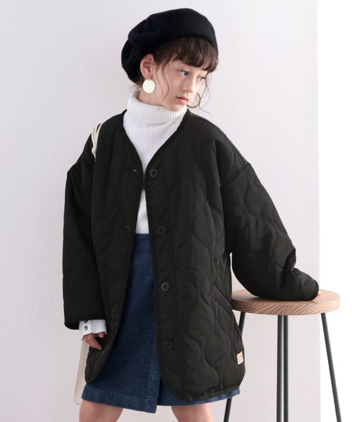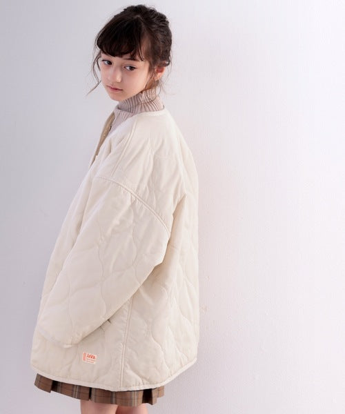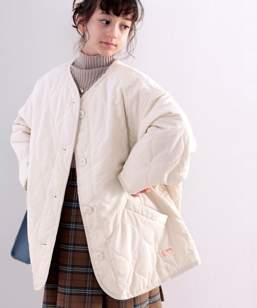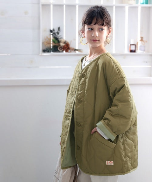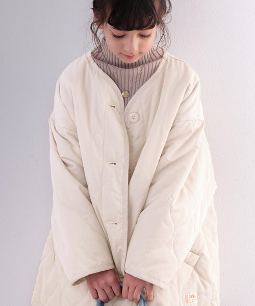 《JaVaジャバ コラボ》キッズ ゆるっと暖か、ノーカラーキルティングジャケット kclf014
