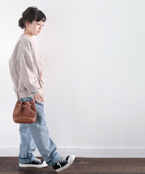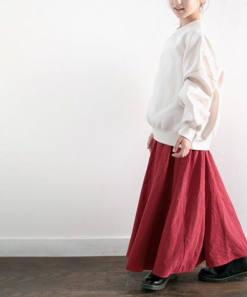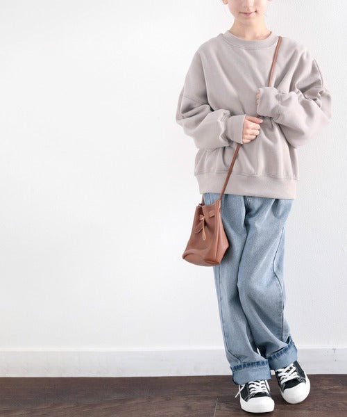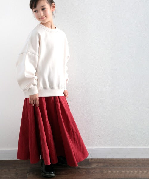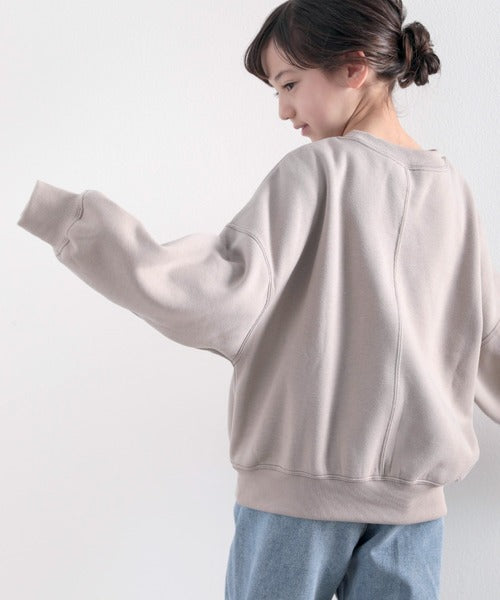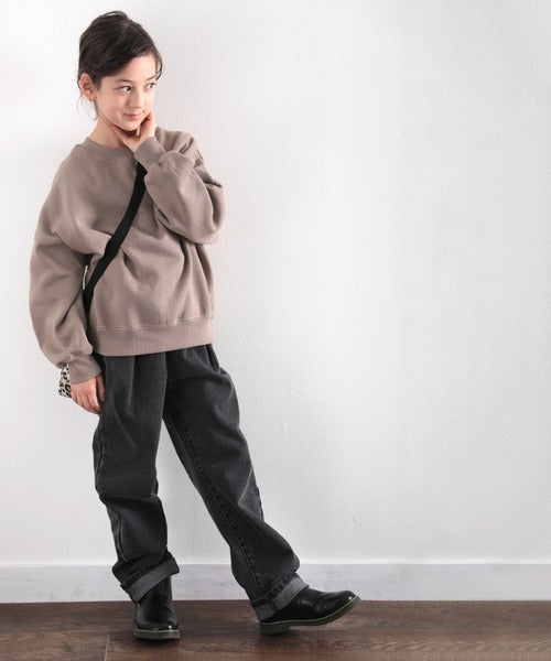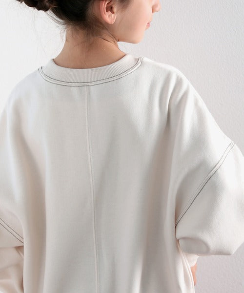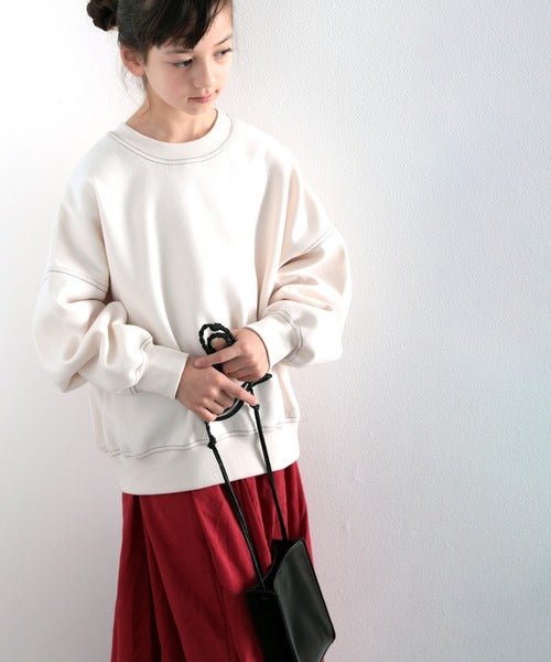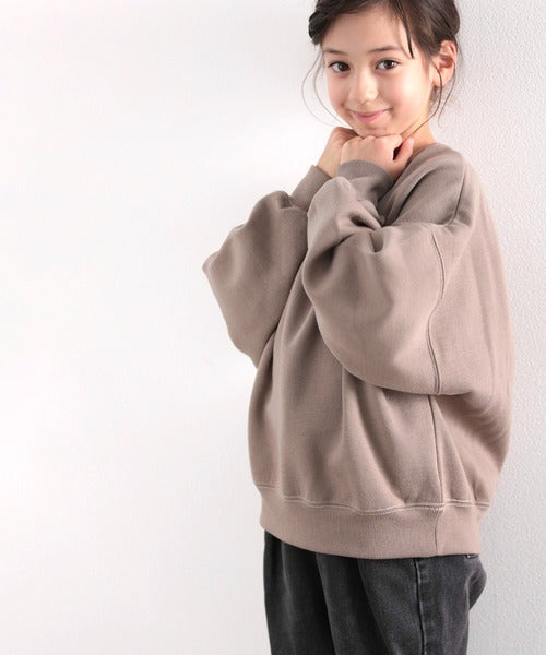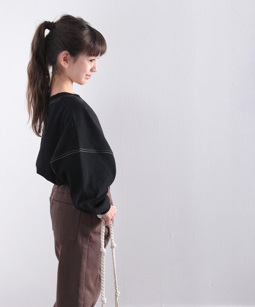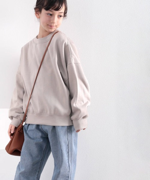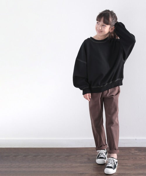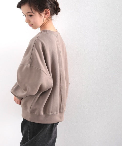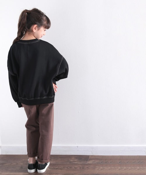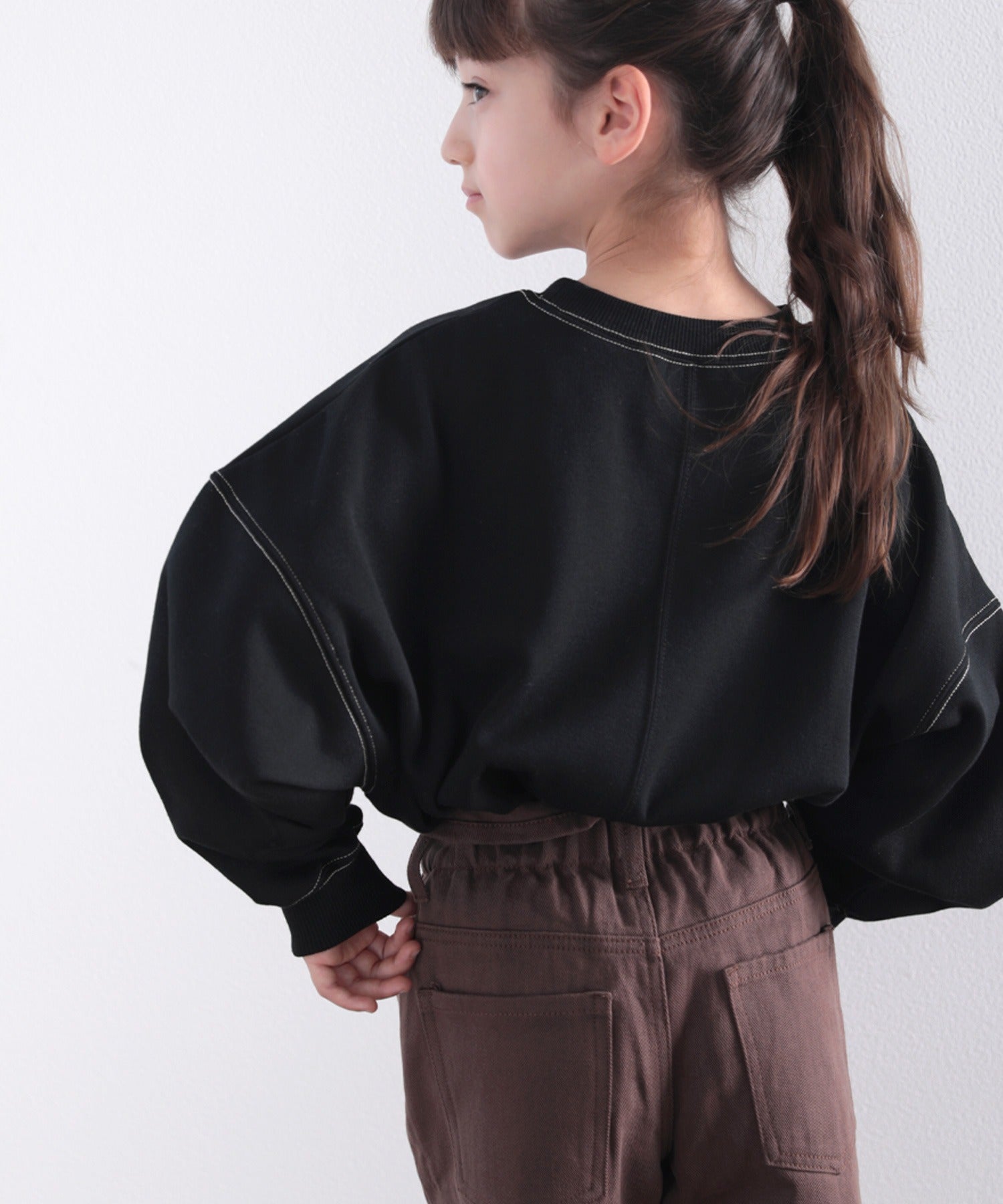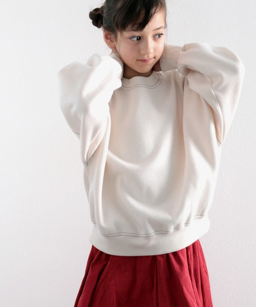 【family+】【親子おそろい】キッズ バックステッチショート丈無地裏起毛スウェット(長袖) kclf028