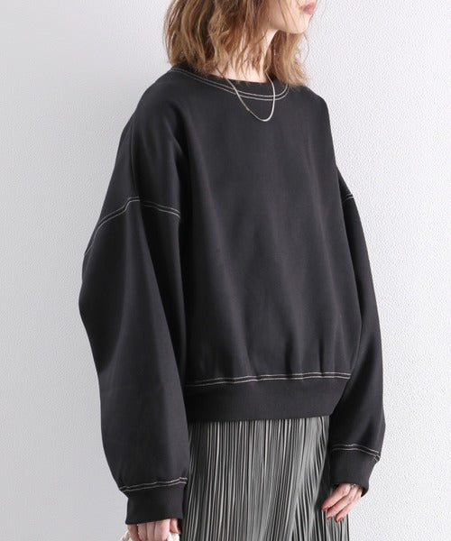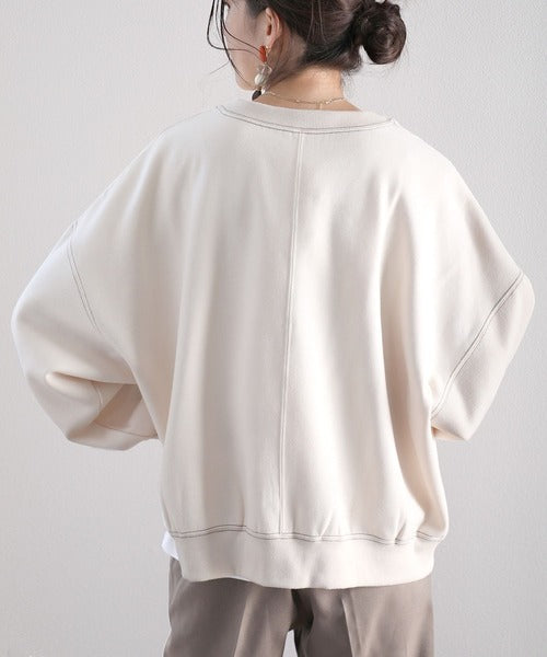 切り替えと配色ステッチが絶妙なバランスのトレンド感のあるビッグシルエット。